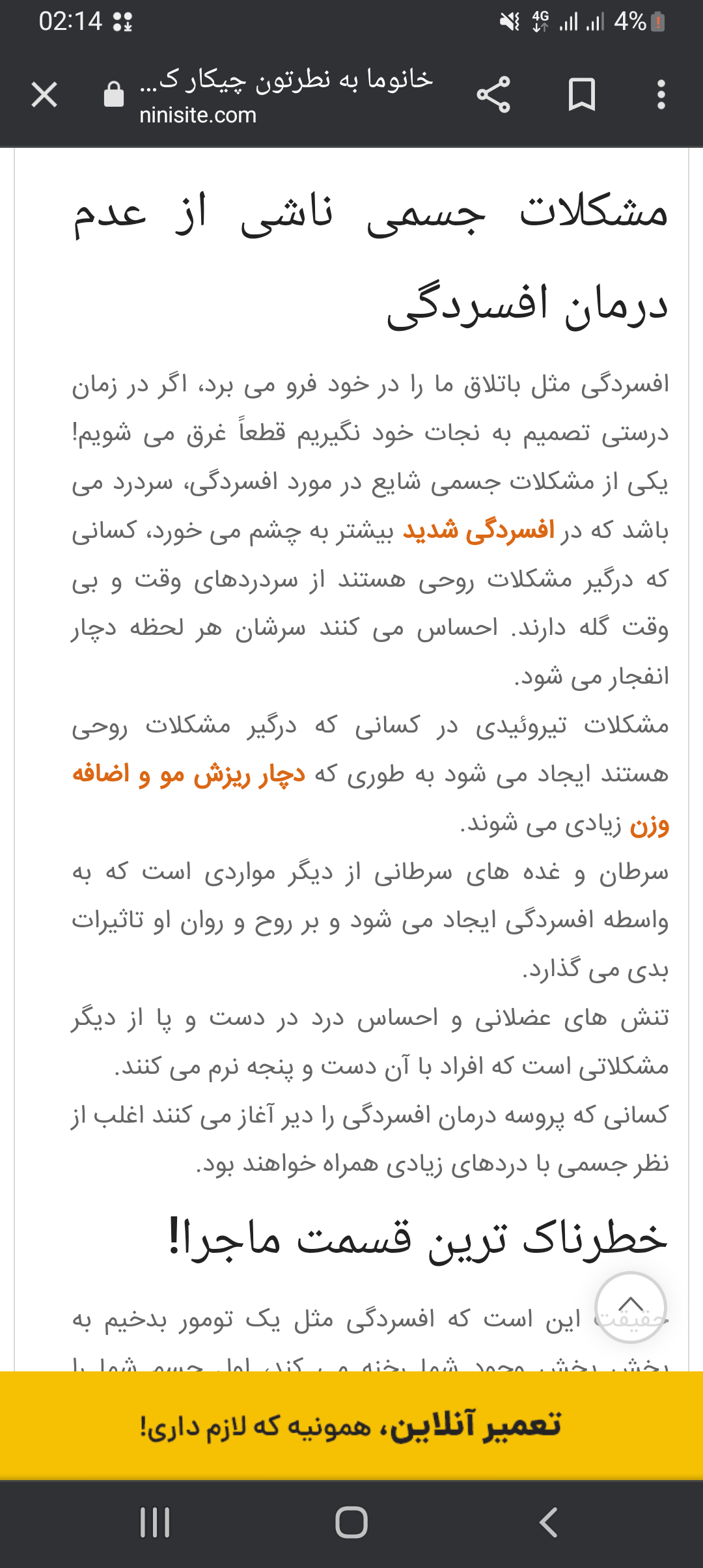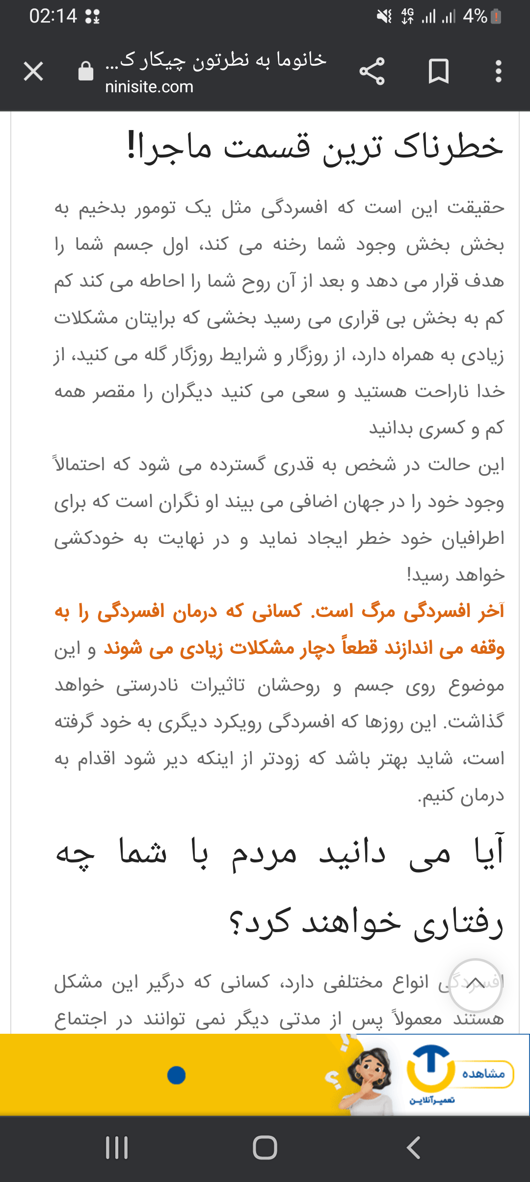 عزیزم ط اون تایپک گفتید اگه افسردگی درمان نشه چی میش چون تایپک قفل کرد نشد بفرستم اینجا فرستادم