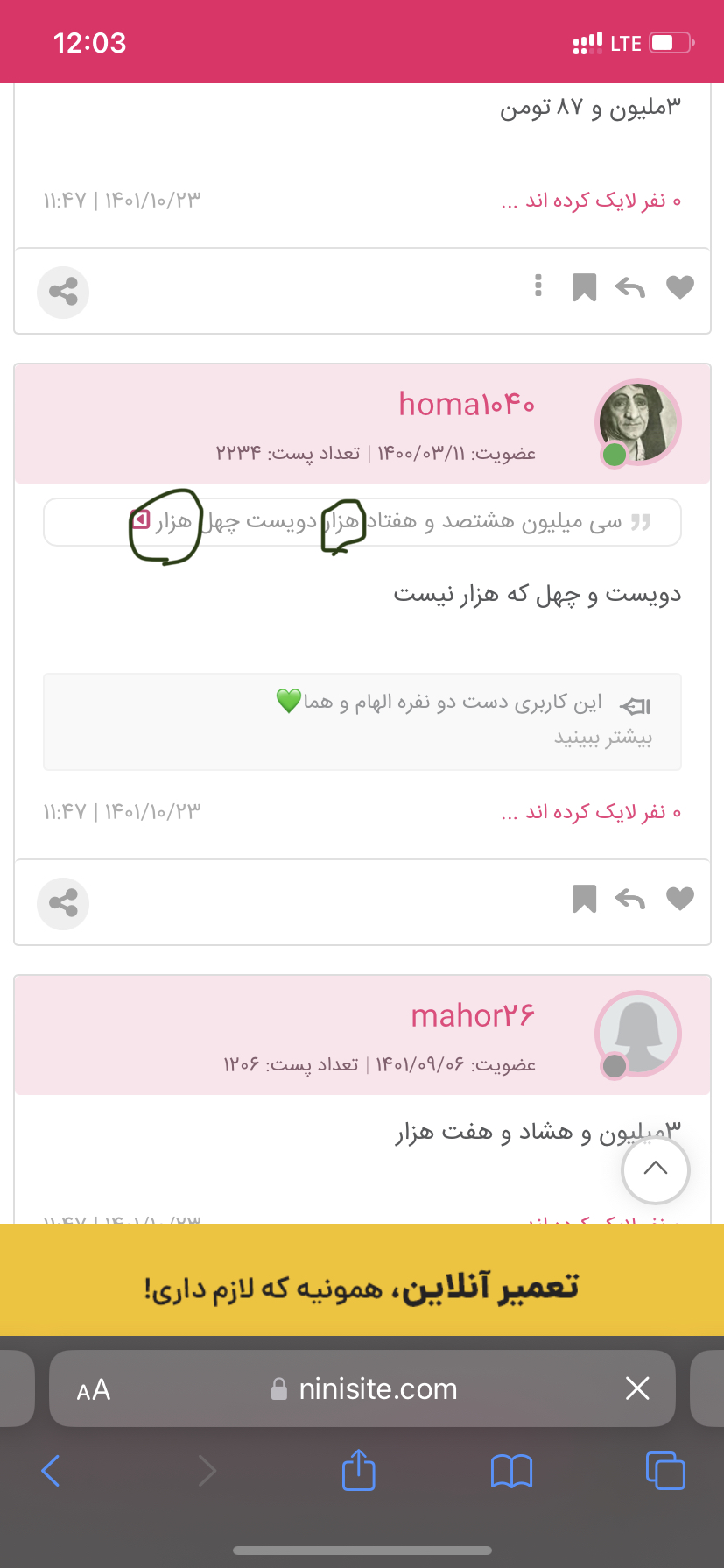 homa1040 عضویت: 1400/03/11 تعداد پست: 2499 کو من دوتا هزار کنار هم آورده باشم ؟؟؟؟؟😐😐😐 ادیت زدی اولش اشتباه گفتی ایناهاش 💚