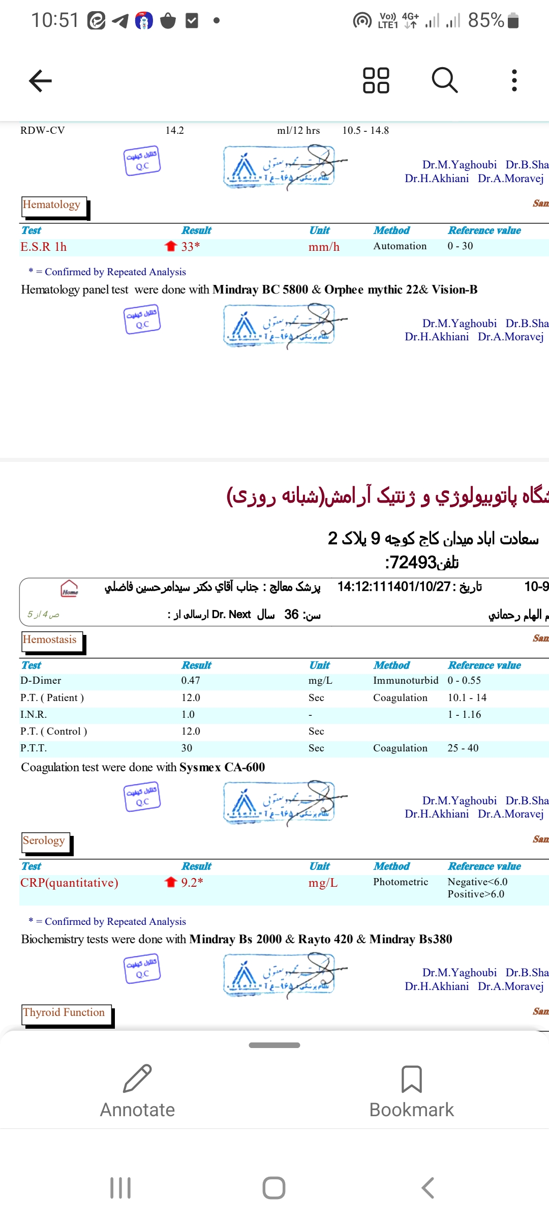 nazi1397 مدیر استارتر عضویت: 1397/08/15 تعداد پست: 566 عنوان جواب آزمایش 136 بازدید | 4 پست سلام دوستان میخواستم بدونم در جواب آزمایش CRP و ESR بالا باشه نشانه چی هست 1401/11/16 | 22:49 0 نفر لایک کرده اند ... گزارش تاپیک نامناسب