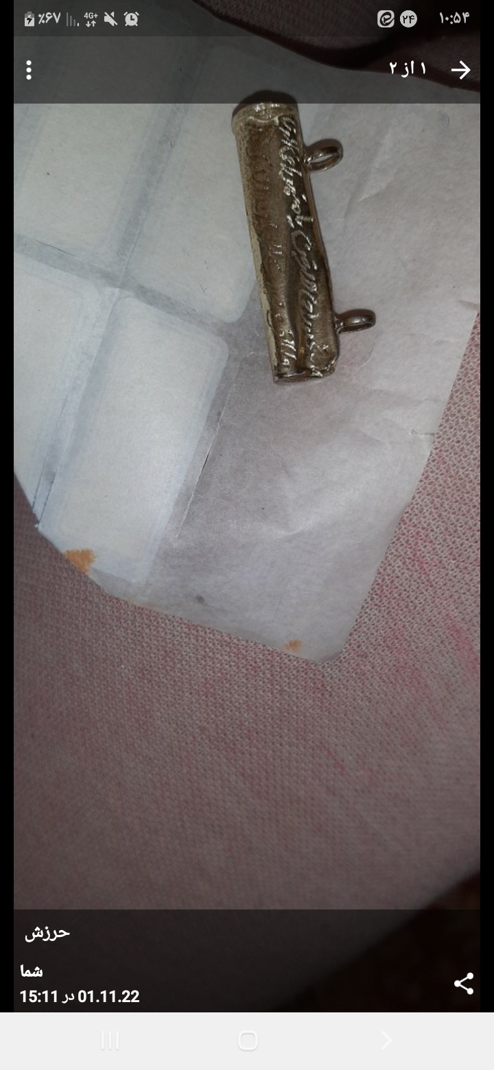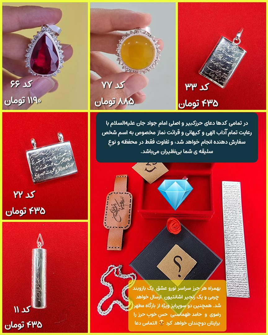 نمیدونم والا فقط دو طرفش بسته باشه جلدش نقرع باشه رو نقره دعانوشته شده باشه