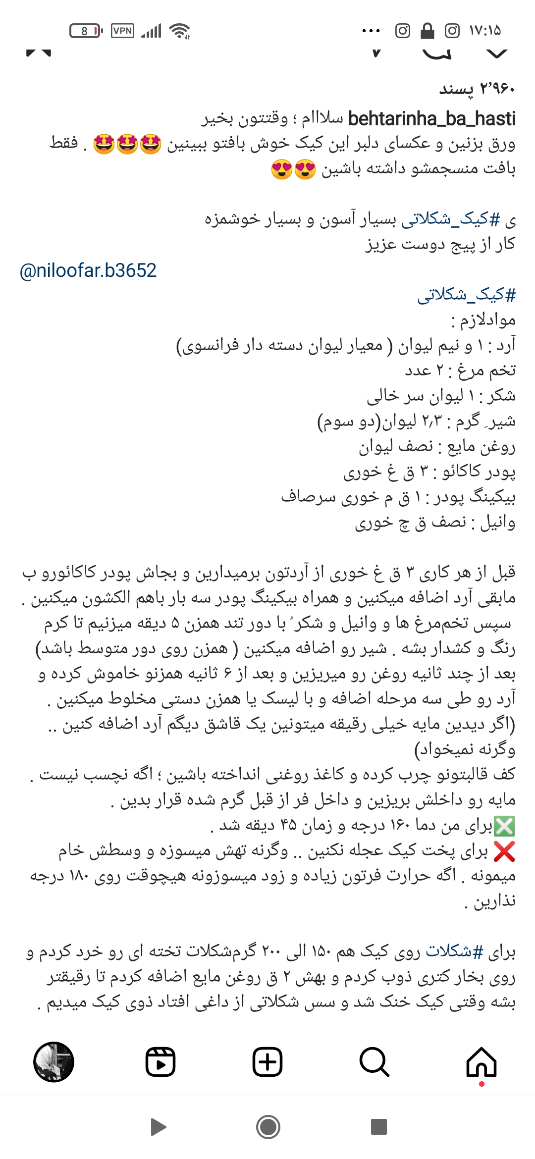 اینبار اینو امتحان کردم البته من از اون شربتش نصف لیوان نگه داشتم خیلی عالی شد هیچوقت فکر نمیکردم همچین کیکی درست کنم