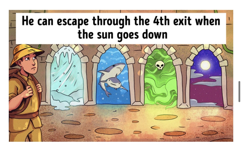کدام راه را باید انتخاب کرد؟ مردی ربوده و در خانه ای محبوس شده. این خانه چهار در دارد که از یکی از ...