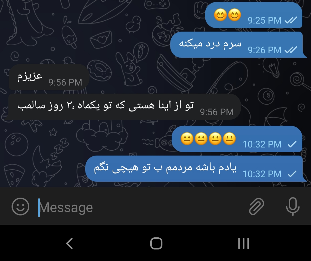 من جا خوردم این جواب بهم داد اسکرین دادم  سر دردم خوب شد شوک بهم وارد شد خخخخ