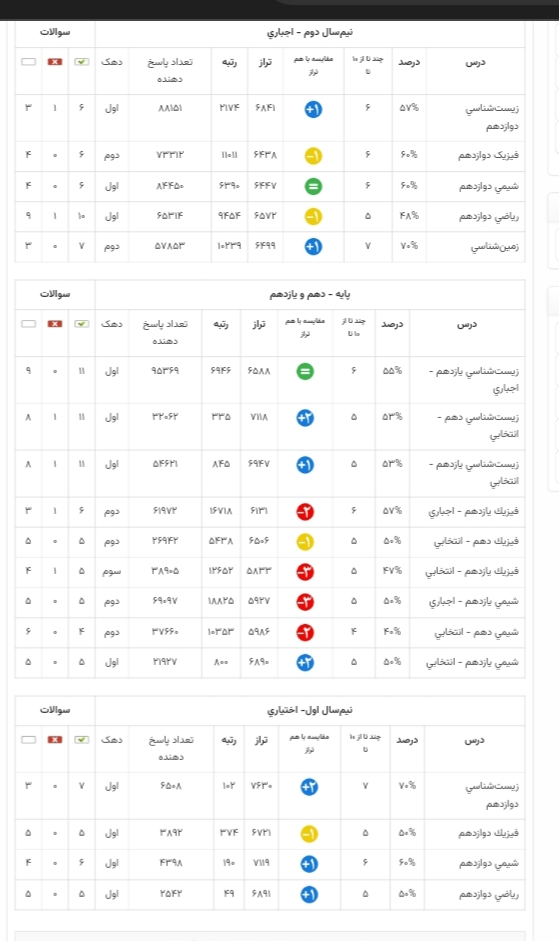 بچه ها😂😂😂 این کارنامه چطوریه حالا سه بارم کنکور دادما یادم نیست این که فقط درصد رو زده بقیش چی