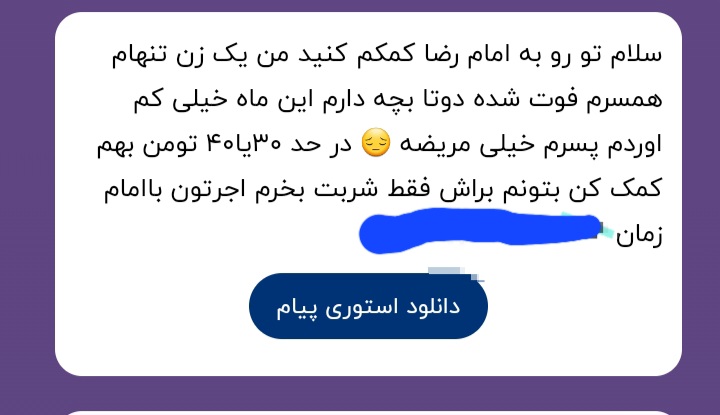الان باز میریزن تاپیک که فکر کن صدقه میدن به تو چه اگه حرفاتون اینه متاسفم براتون حداقل کمک کسی کنین که بدونین واقعا نیاز داره که خدا هم دستتون رو میگیره یجایی 💕