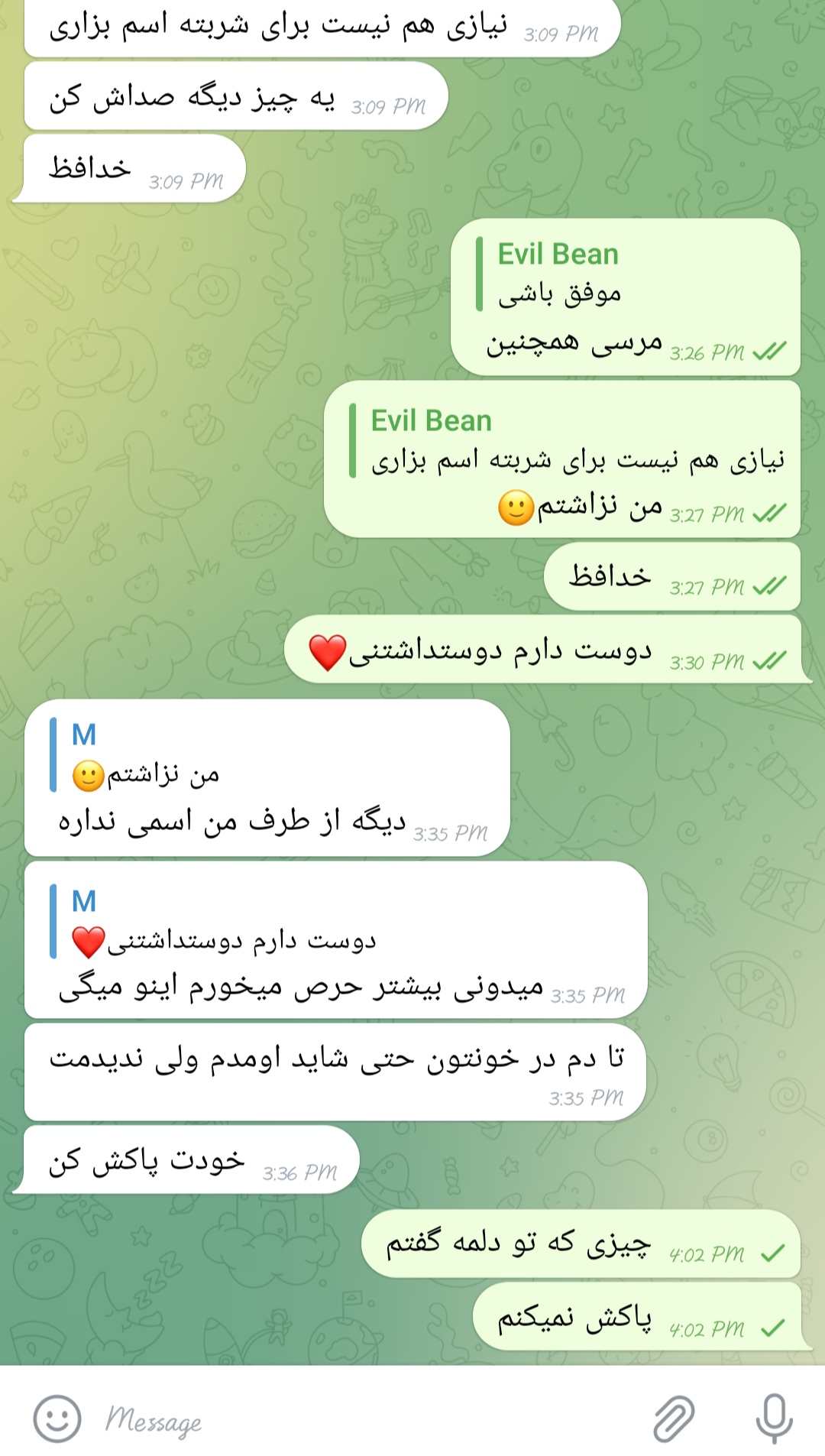 shayesteh_ مدیر استارتر عضویت: 1401/09/29 تعداد پست: 507 من رلم هم هیچوقت قرار نیس همو ببینیم خب چی میشه اخرش ☹️🥺