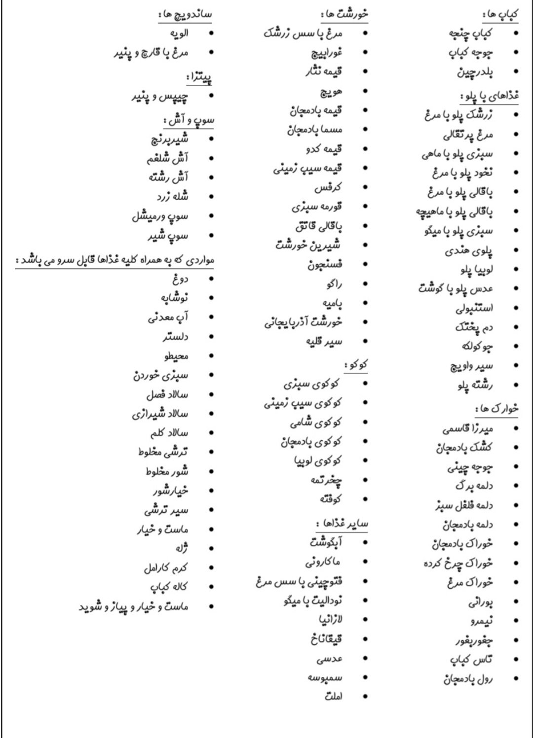 اینه یه کم قدیمیه چون یه چند تا غذای دیگه یاد گرفتم که بهش اضافه نکردم