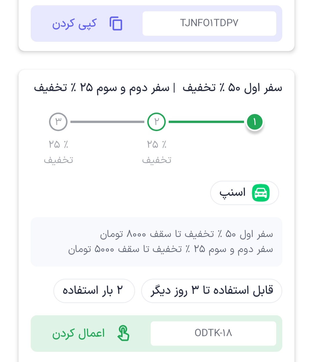 ناز_خانون مدیر استارتر عضویت: 1401/12/01 تعداد پست: 2657 عنوان بچه ها کسی تخف یف اسنپ داره بهم بده؟ 57 بازدید | 7 پست من هر روز مجبورم یه مسیرو برم و اسنپ میگیرماگه کد تخ فیف دارید و خودتون لازم ندارید بدید به من🌹کمرم خم شده زیر بار هزینش نقاش چپ دست هستم و اهل سمنان،کاربری دست دونفر🌼 1402/07/19 | 21:20 0 نفر لایک کرده اند ... گزارش تاپیک نامناسب