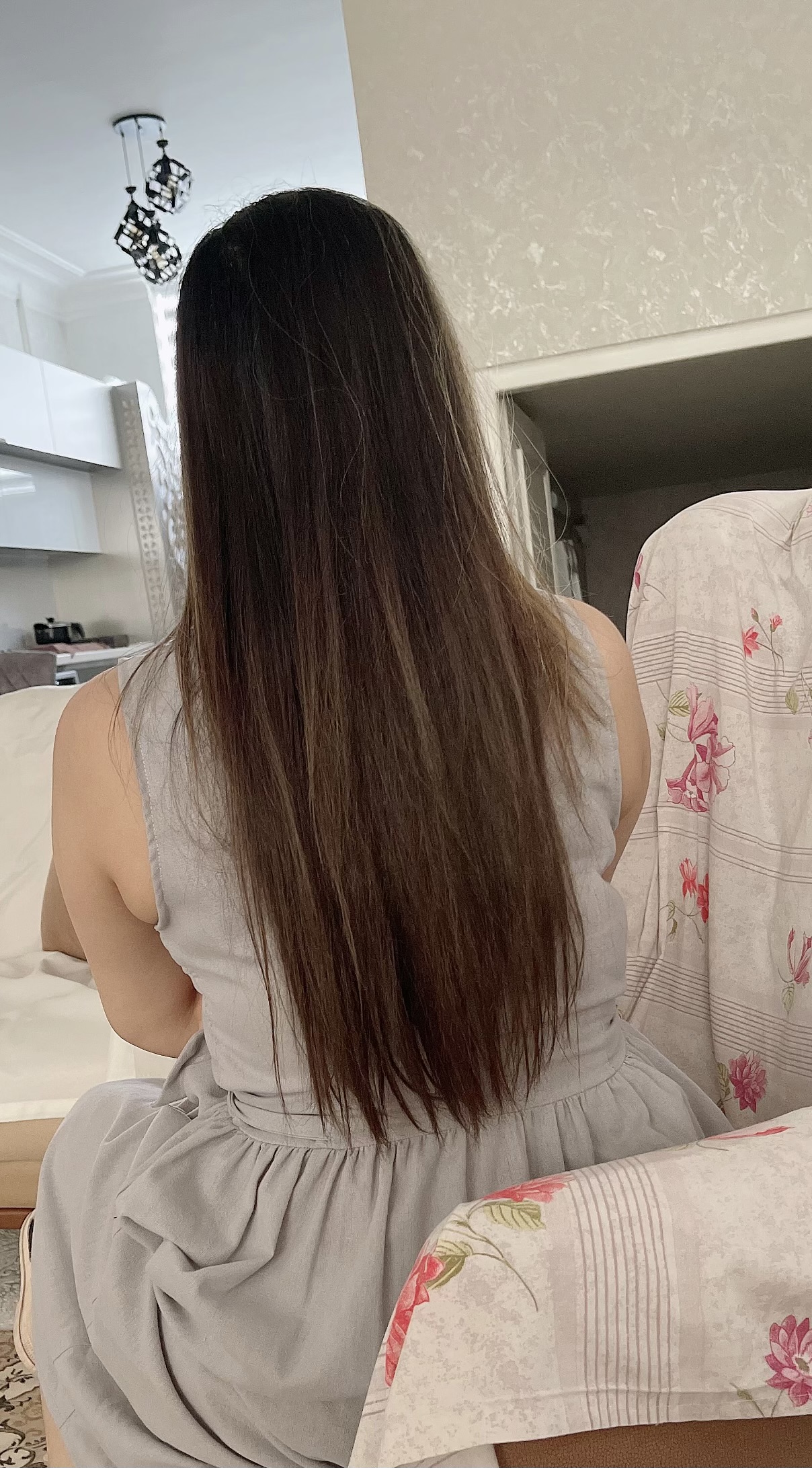ماشالا هم خودت قشنگی هم موهات هم لباست هم خونت هم وسایلت  ایشالا رنگ دلخواهت درمیاد موهاتم ک بلنده همون 3 تا تیوپ طبیعی و دودی و شکلاتی همه رو قاطی کن با اکسیدان 6 درصد بخوای براق و گرم بشه ی مقدارم واریاسیون نقره ای