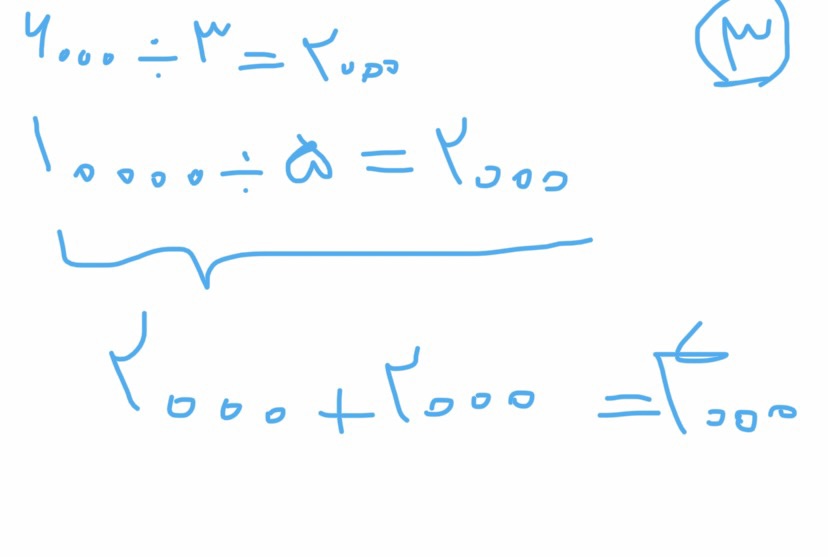 سوال ۳) ثلث یعنی یک سوم درنتیجه رها دوتومن داده و و خمس میشه یک پنجم پس وحید هم دوتومن داده که به اضافه هم میشه جواب میشه ۴۰۰۰