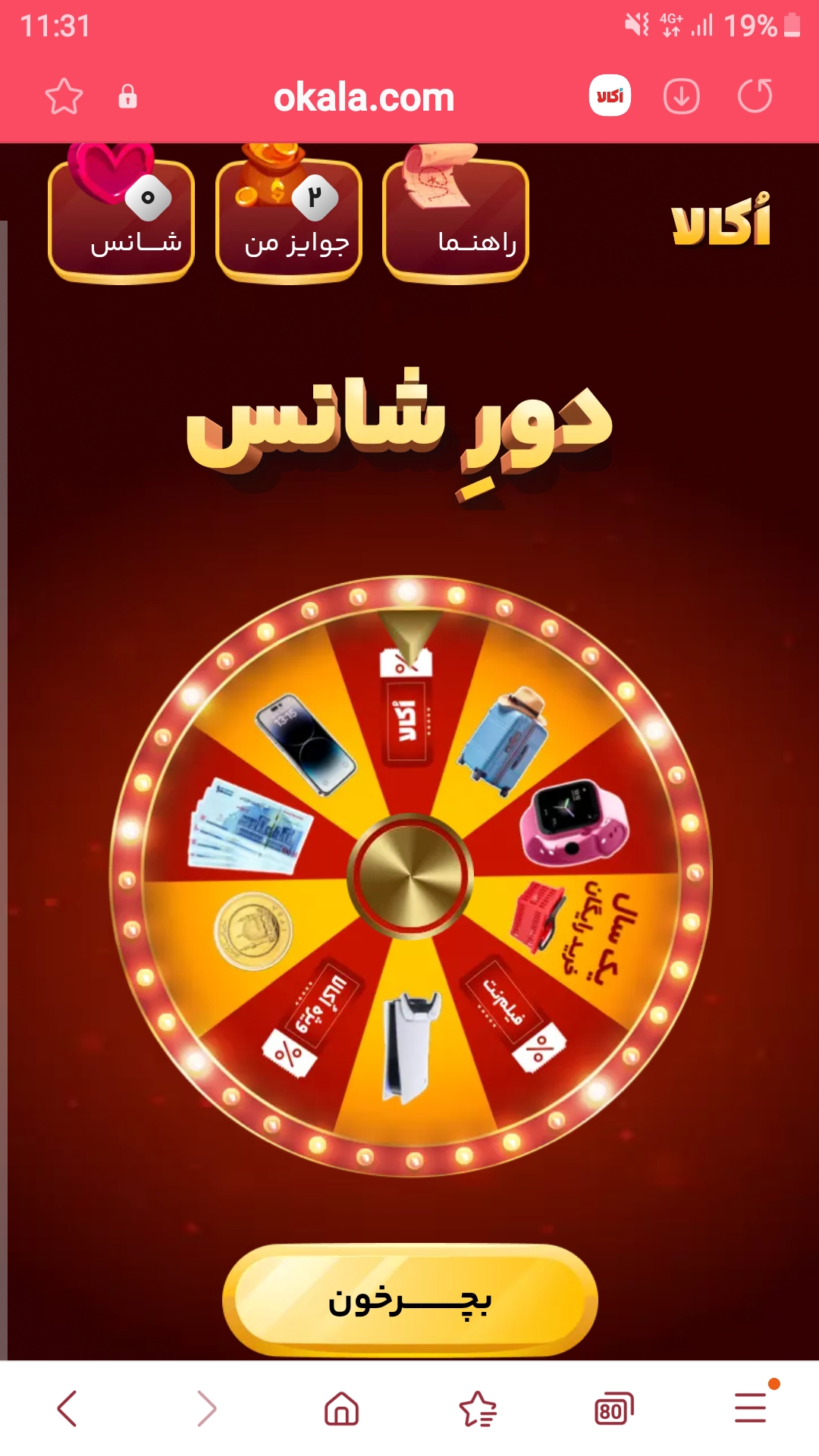 سلام دوستان لینک چرخونه افق کورش رو بزنید یه شانس میده هم به شما و هم به من میده.