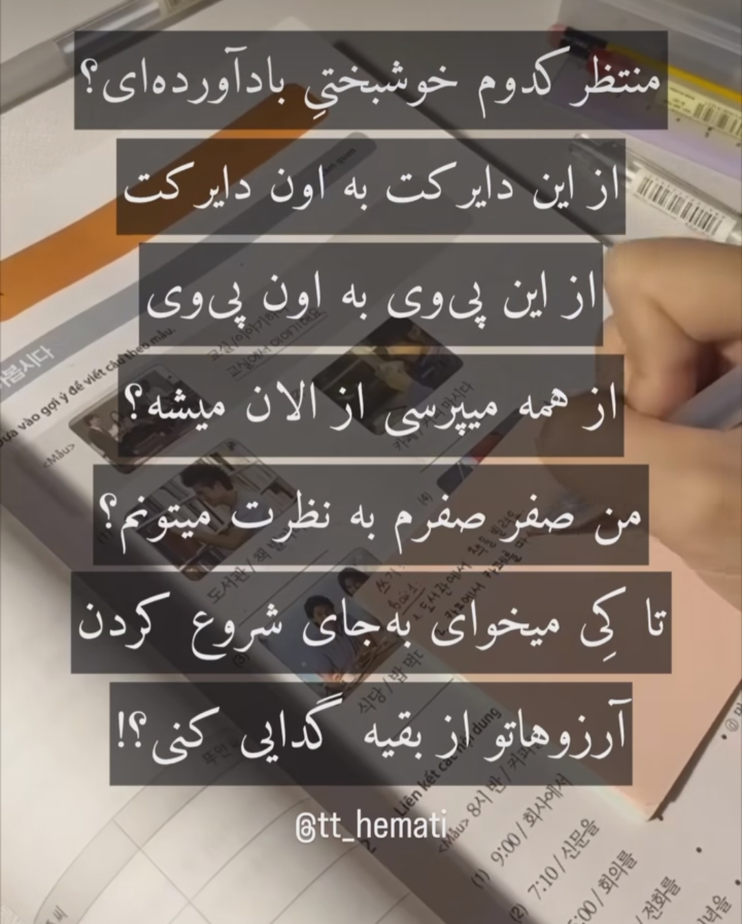 😐🤦♀️دوستان اینو بفهمید که من فقط دوستدار استادم. خودشون نیستم پس هر خطایی از من دیدید پای خودم بزارید نه ایشون. گر میسر نیست مارا کام او عشق بازی میکنیم عشق بازی میکنیم با نام او لطفا با شعری ک گذاشتم شوخی های ک درحد شخصیت خودتونه نکنید جنبشو ندارم 😊 یاد بگیریم از روی عکس پروفایل و اسم کاربری همدیگرو قضاوت نکنیم دنیا جا ی قشنگ تری میشه 🌹تو نی نی سایت عاشقا از کسایی قلبشونو شکستن، جاریا از جاریا، خواهر شوهرا از زن داداشا، عروس از مادر شوهرا، مادر شوهرا از عروسا، کاربرا از کارای دیگ، گله میکنن و میگن چقدر بد هستند، الان من موندم این بد های واقعی کجان؟ همه جز خوبا شدن ک...