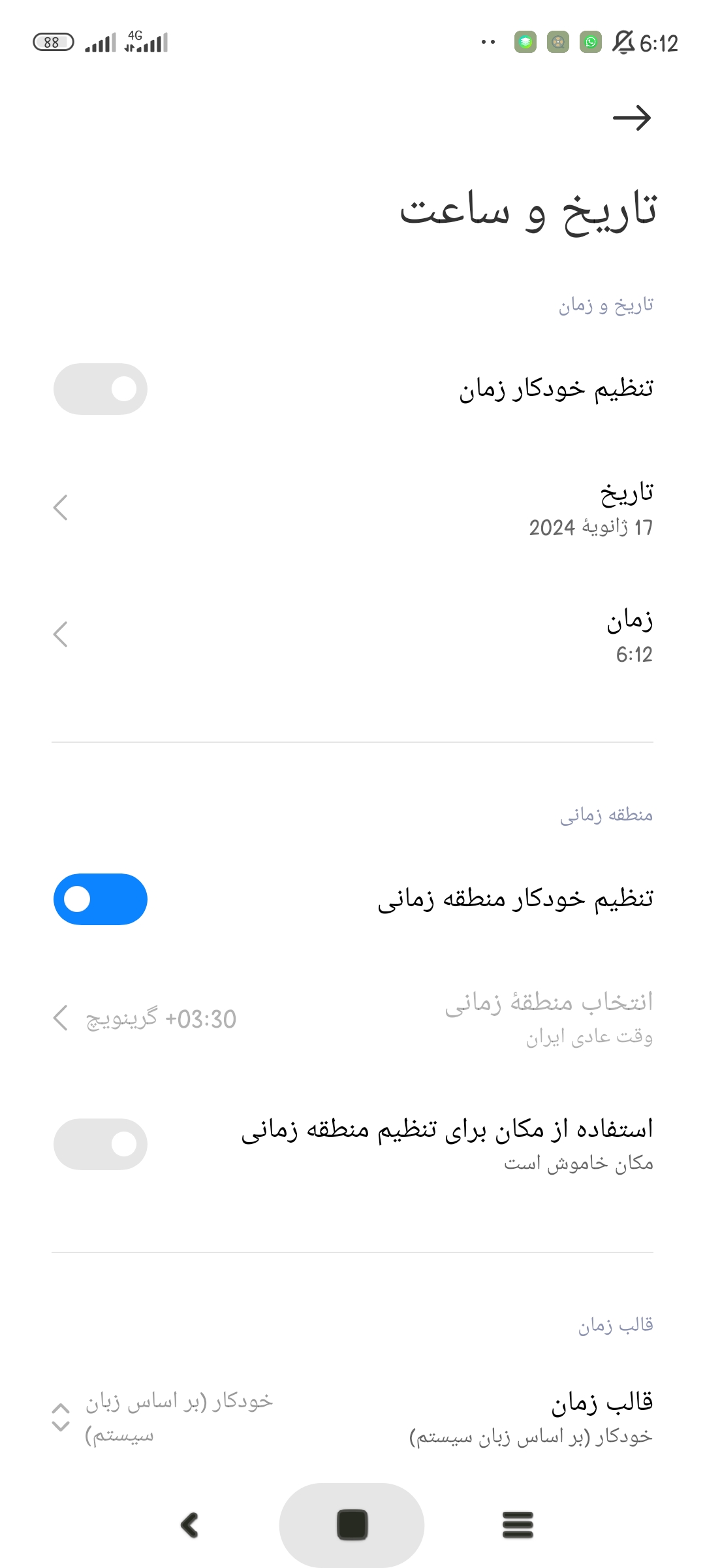 تنظیم ساعت گوشی