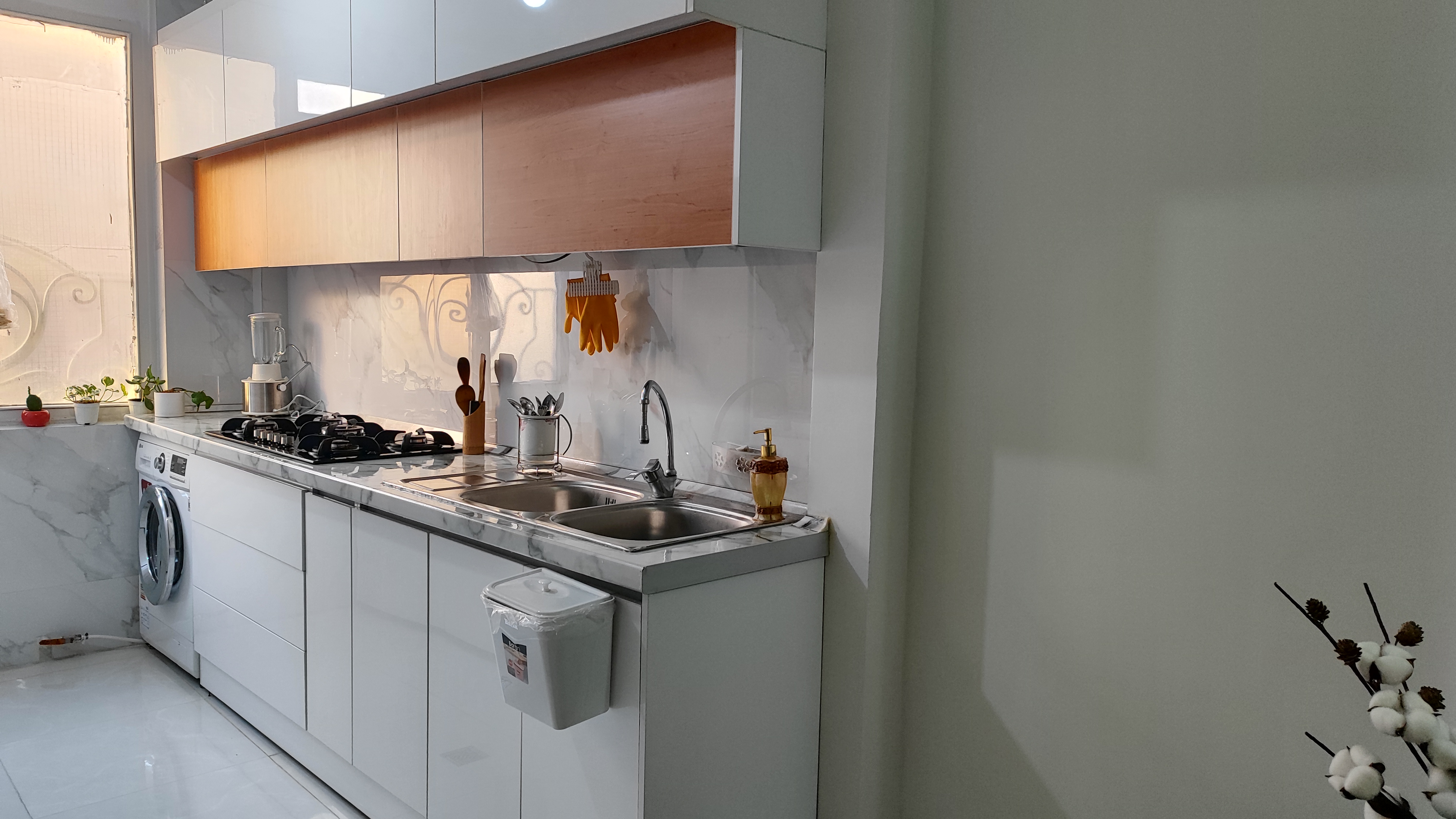 اشپزخونه من راهرویی ماننده کامل نمیشه عکسشو بذارم دو طرفش اندازه هم کابینت خوردن این عکس یه طرفشه
