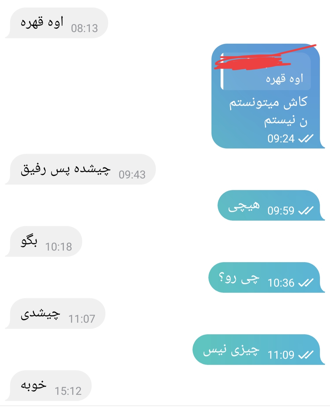 حالا بیایین عکس چت امروزمون و نشونتون بدم ب نظرتون منظورش از رفیق گفتن چیه؟؟ اولین باره بهم میگ