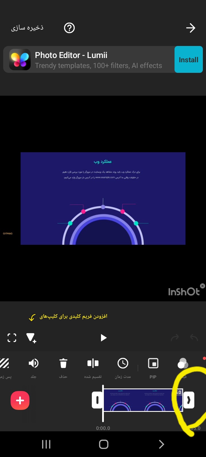عکستو انتخاب کن بعد این قسمتی ک دورش خط کشیدم رو بکش ب سمت راست تایم عکست زیاد میشه