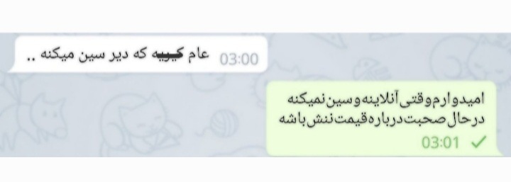 خانوما دختر داییم با نامزدش قطع ارتباط کرد تقصیر دختر عمم بود بعد کلا نامزدش بلاکش کرد و تموم شد بعد دختر عمم توی تلگرام که بلاک نبود بعد یک ماه پیام داد گفت بیا بهم فرصت بدیم بعد پسره گف تو بچه ای من از تو بزرگترم دوست ندارم نمیخام حالا دختر عمم ۲۱ سالشه پسره ۲۵ الان دختر عمم بهش گف اوکی هرجور دوست داری دوروزه پیامشو سین نزده بنظرتون اینو بزارع پروفایلش؟😂💔