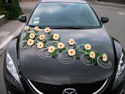 شیشه پشت ماشین رو با گل قلب بزرگ درست کن!دستگیره ها رو هم پاپیون قرمز با بند بلند!عقب ماشینشون رو هم ...
