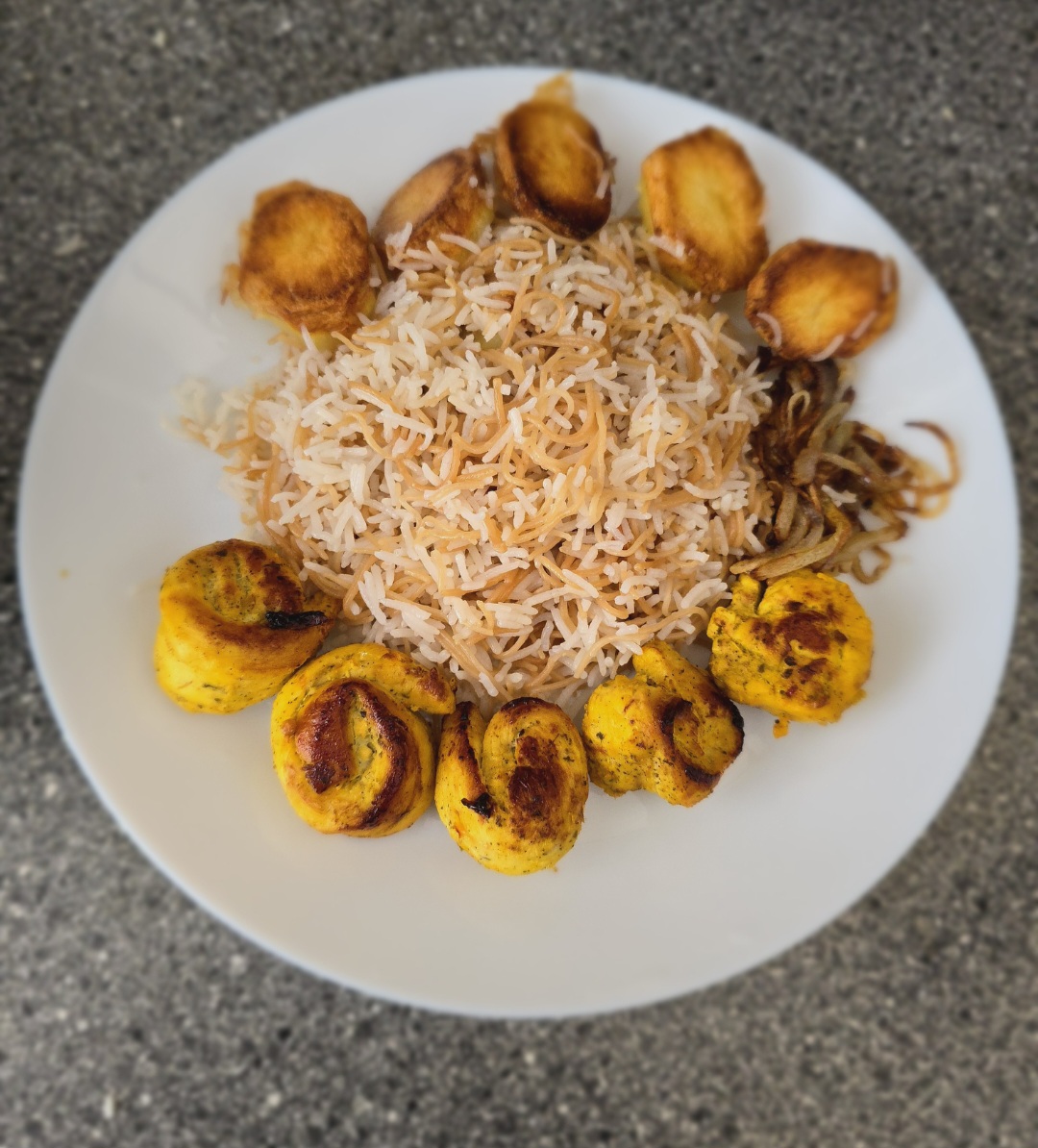 من رشته پلو با فیله مرغ حلزونی😋😍