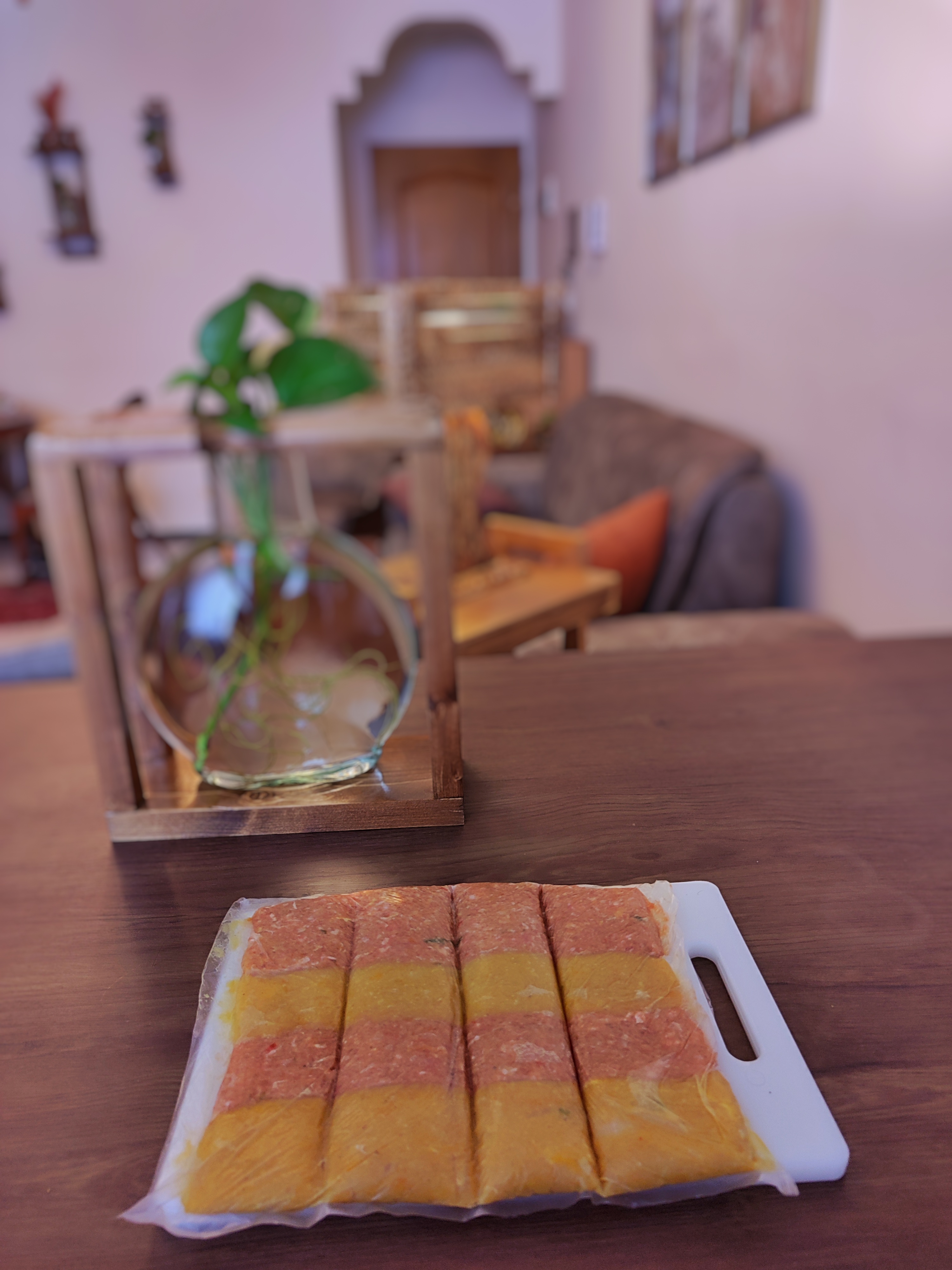 بعد ردیف ردیف تو کیسه فریزر میریزید و مثه عکس پایین برش میزنید و بعد ۴ساعت فریزر و بعد سرخ میکنید و نوش جان
