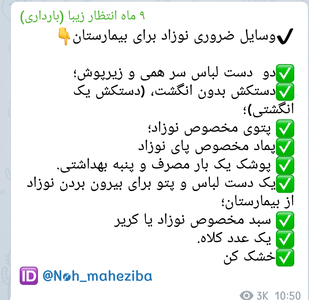 تی_تی2 عضویت: 1395/10/13 تعداد پست: 26570 عزیزم این لینک و بخونآماده کردن ساک بیمارستان نوزاد ننه شه دتر دور/شه کوی کوتر دور/ننه شه طلای دورا/نازدار کیجای دورا/ننه شه کیجا ره خرنه/آسمون ما ره خرنه/شه صوب روجاره خرنه/شه طلاطلا ره خرنه/آننه شه دلخواه دور/ننه پاپلی دور/آ شه دار تتی دور🥰