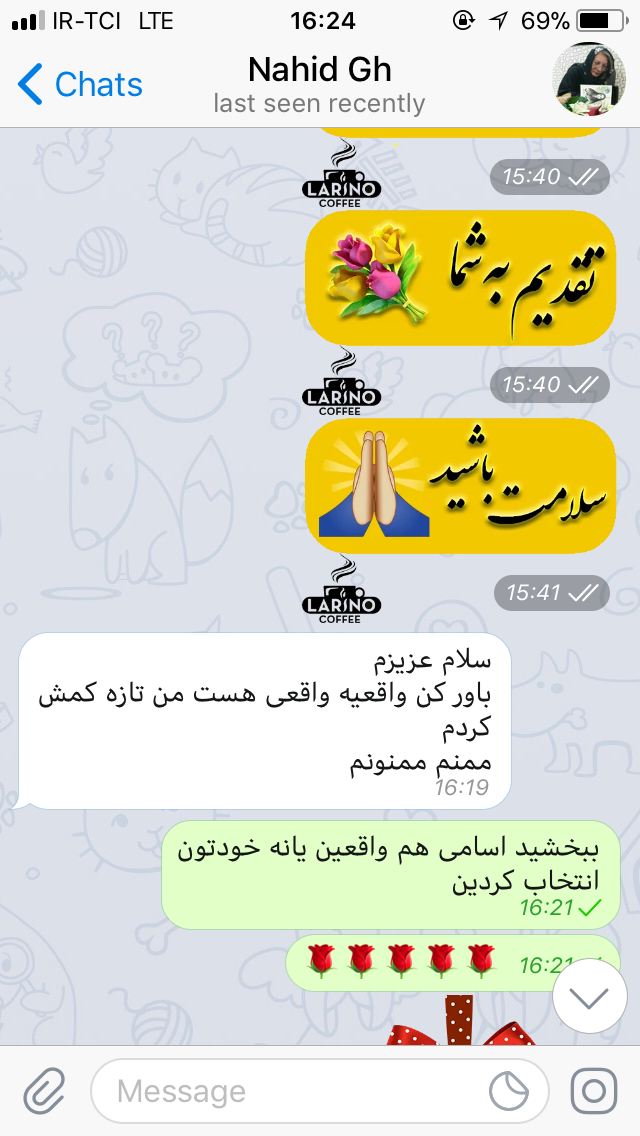 وقتی حالم بهتر شد براش پیام دادم  ..