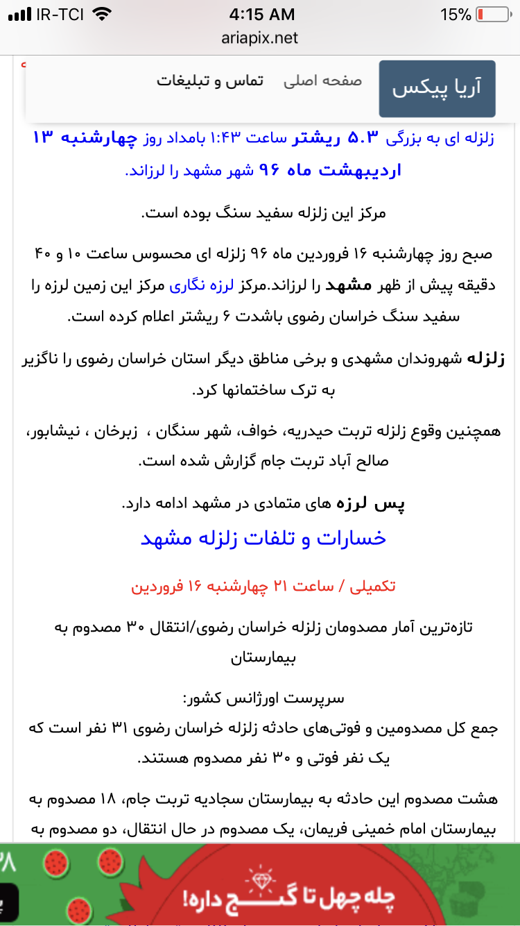 فکرکنم دی ماه بود 6ریشتر بود زلزله اصلیش ولی بعدش تا1ماه پس لرزه داشتیم