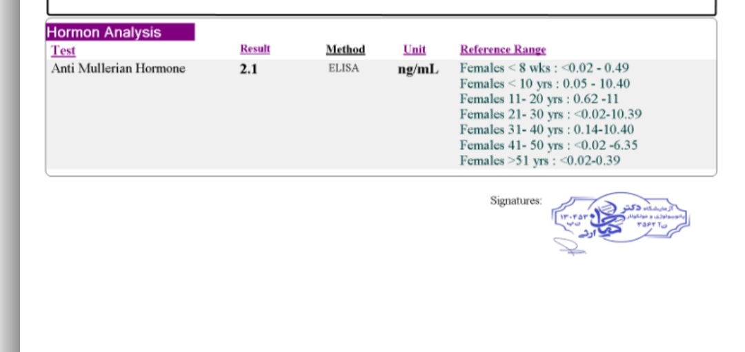 سنت و علت آزمایش شما چیه ؟ دقیق بگو ولی در کل نتیجه آزمایش AMH بالا نشان‌ میده سطح هورمون ضد مولرین ...