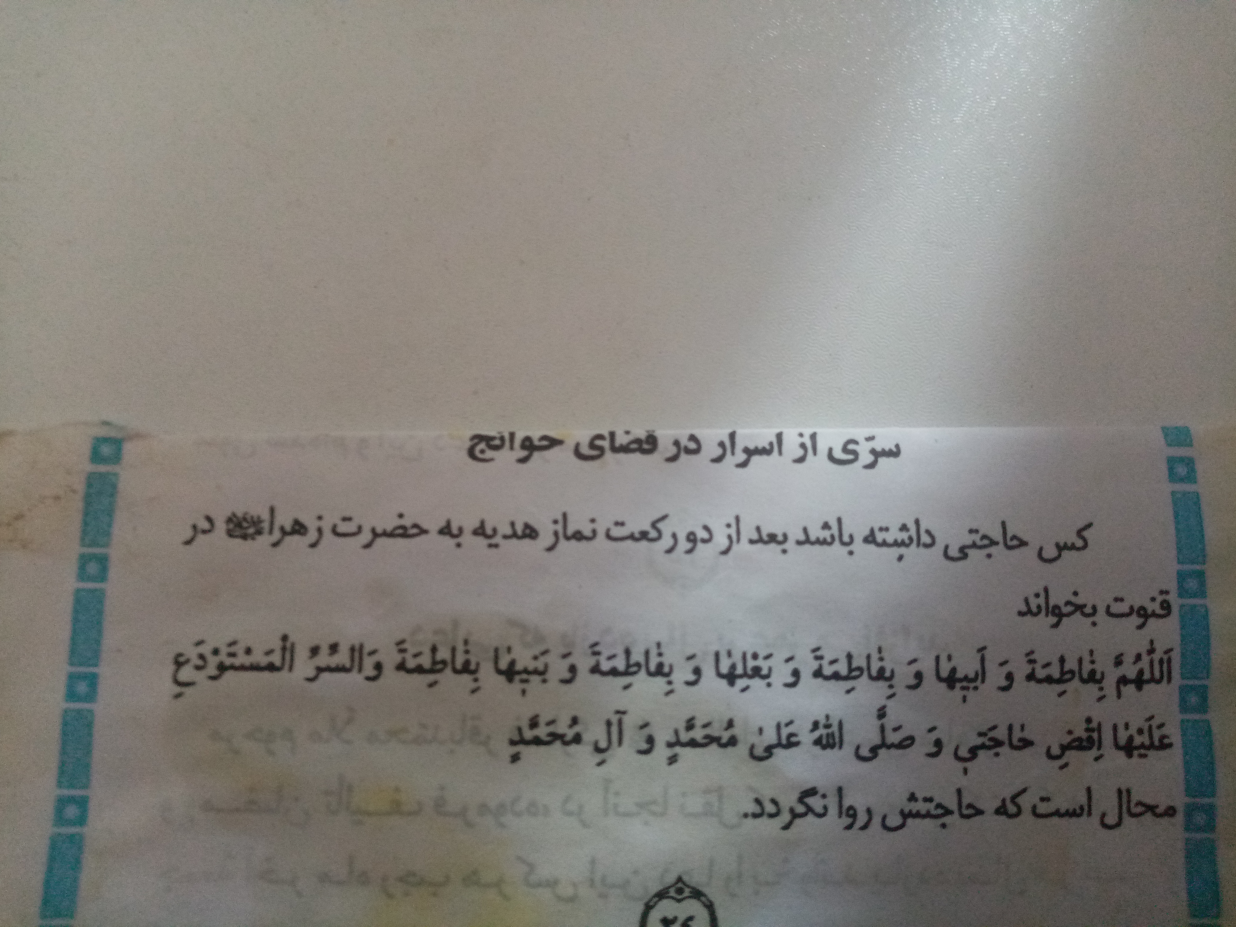 عزیزم راستی یه نمازی هس اگه بخونی رد خور نداره صب کن الان برگه ای که روش نوشته بود رو پیدا کنم عکس میذارم ازش معلومه امام رضا هم دوستت داره که وقتی میرم حرم همیشه قراره یادت بیوفتم