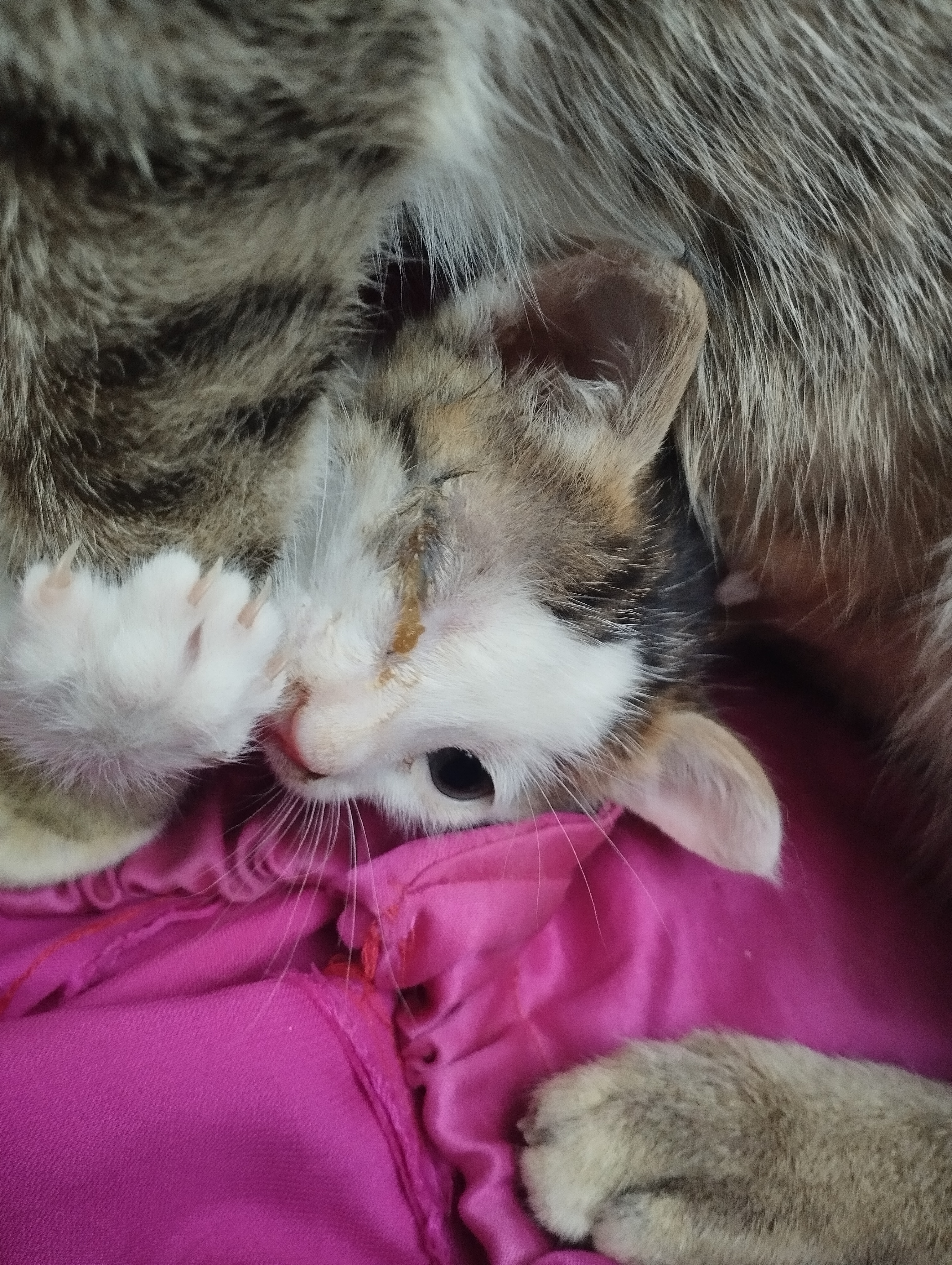 منم چندتا بچه گربه پیدا کردم چشماشون همین جوری بود از دکتر پرسیدم قطره داد ،الان اسمشون یادم نیست یه ...
