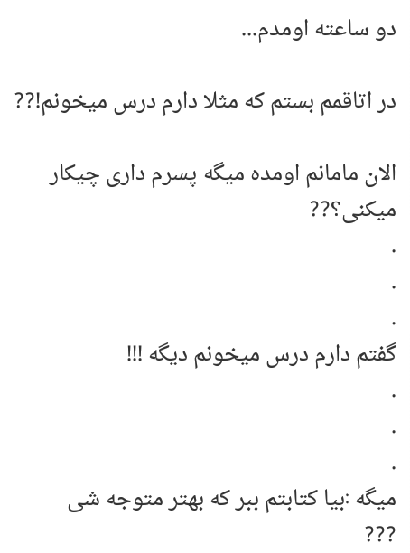مردم معترض تروریست نیستن، ولی تروریستا لا به لای مردم بودن(مردم رو سپر انسانی کردن برای نبرد نهایی). یکی از اصول اسلام عدالته، اگه مثلا ۴ همسری رو قبول نداشته باشی از دین خارج نشدی (ادامه آيه مد نظر گفته شده، نمیتونید عدالت برقرار کنید و به یه همسر اکتفا کنید وگرنه جز کافران هستید)👈 روشنفکرنماها معتقدن امر به معروف یعنی فضولی! ولی خودشون صبح تا شب در حال تلاشن که دیگران رو به کاری که از نظر اونها درسته هدایتکنن و در پی آزاد کردن نادانها هستن👈 خدایا هزاران بار شکرت