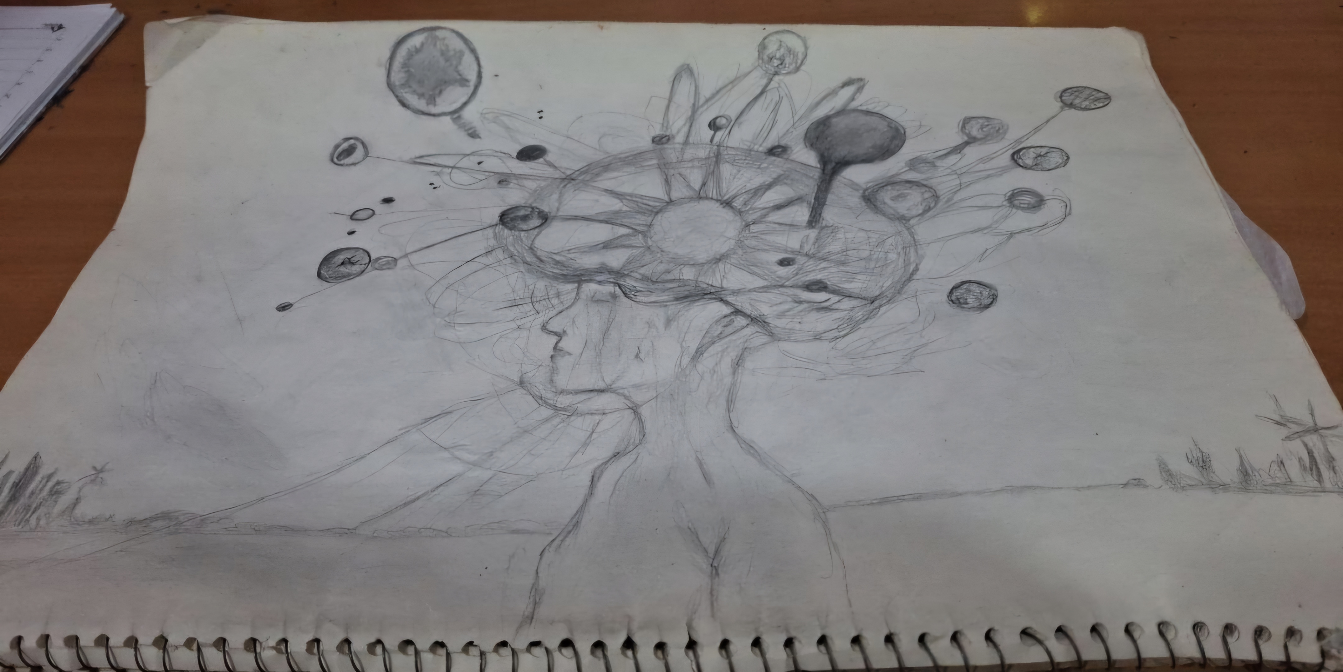 راجب نشخوار فکریه راجب کسیه که تو تاریک ترین لحظه هاش تنهاست و کسی دورش نیست و اینقدر فکر کرده گنجایش مغزش پر شده و این افکار مثل طنابای بهم گره خورده بهم وصلن جوریه که  انگار باز نمیشن ولی میون این عمه تاریکی یه جرقه ای هست تو مغزش یه جرقه ای از امید به اینکه شرایط بهتر میشه و اون توپا هر کدوم نماد اضطراب افسردگی و نا امیدی ایناست 🥲