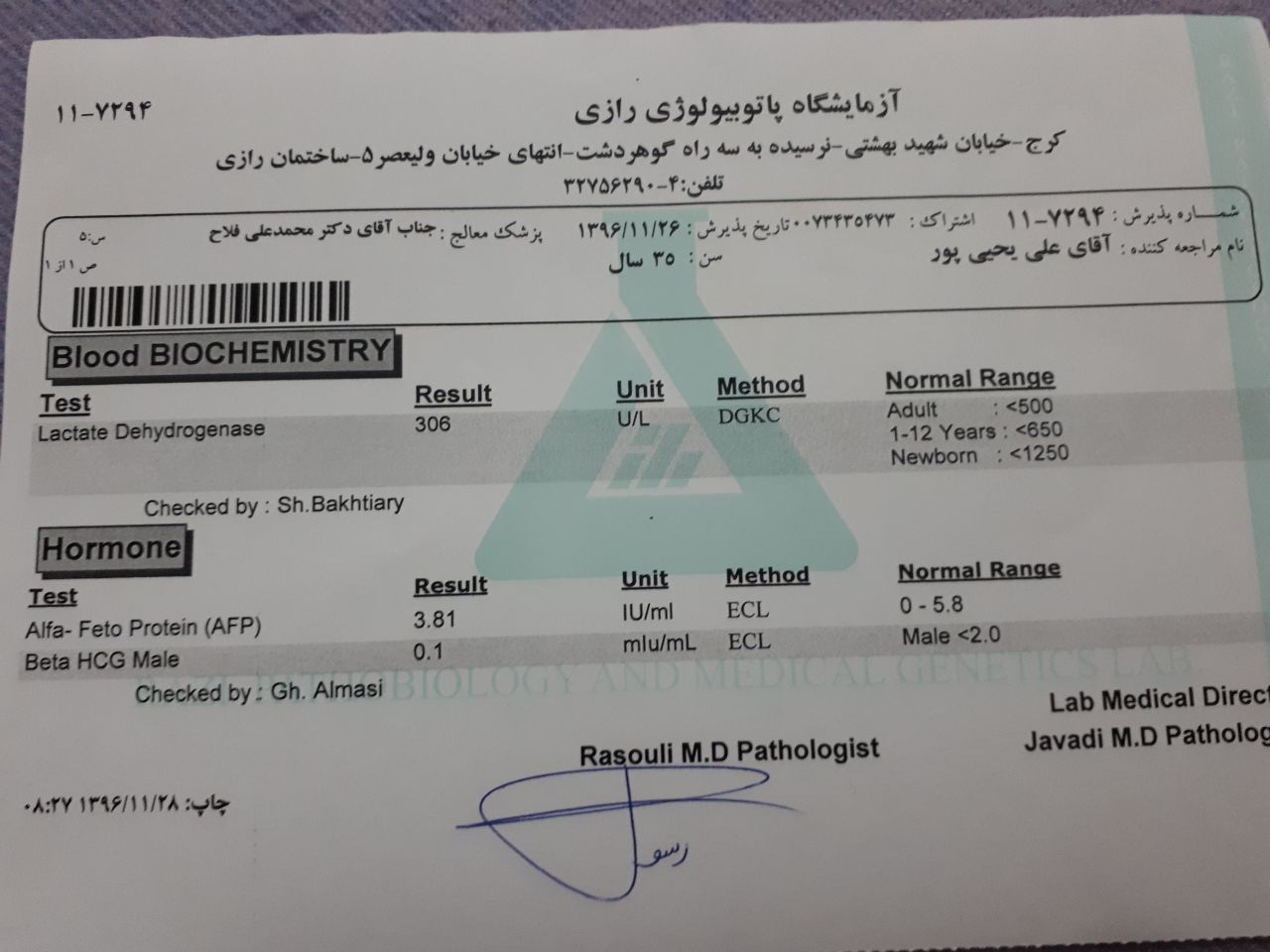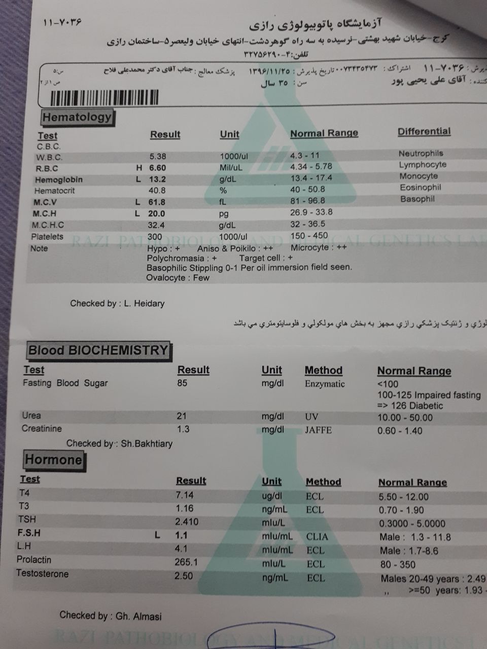 سلام ، کسی میتونه جواب ازمایش شوهرمو تفسیر کنه؟ برای ناباروری ازمایش داده بود اگه ممکنه بیاد بگید .