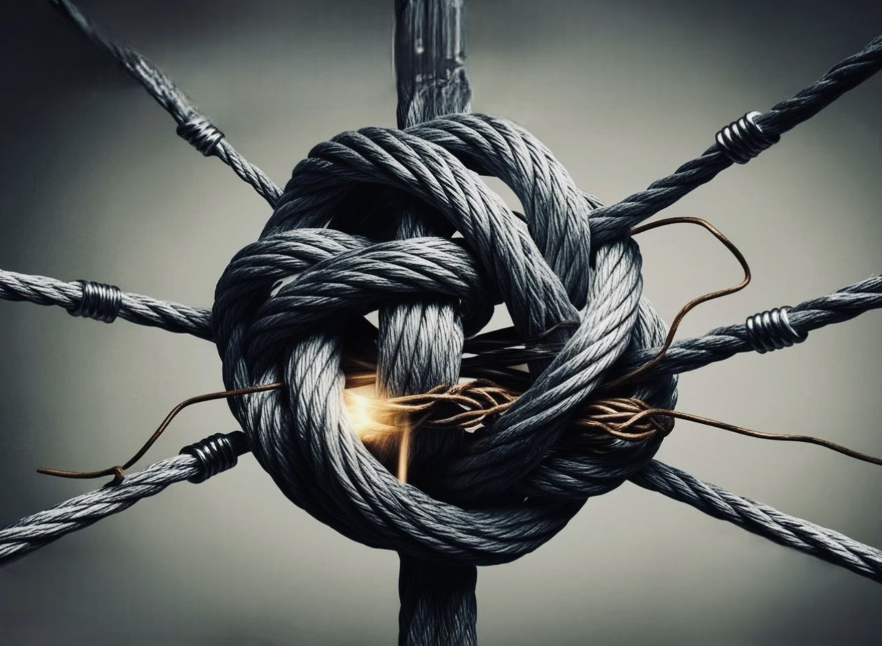 🔗 رشتهای گره خورده و پیچیده که نمادی از مشکلات و عواقب دروغگویی است