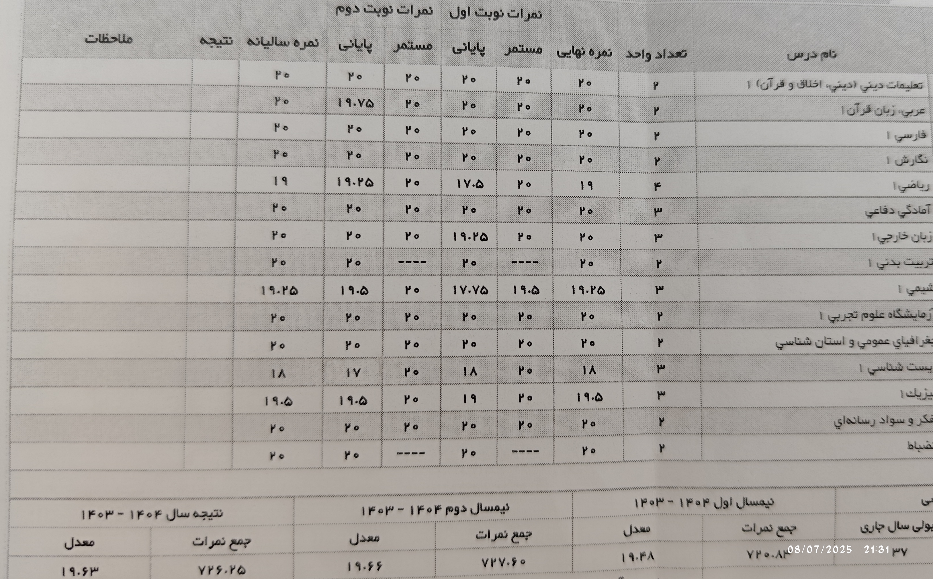 نمره ها همه ۱۹ ۲۰ ، نوشته مامانم میگه تلاش نکردی🧍♂️