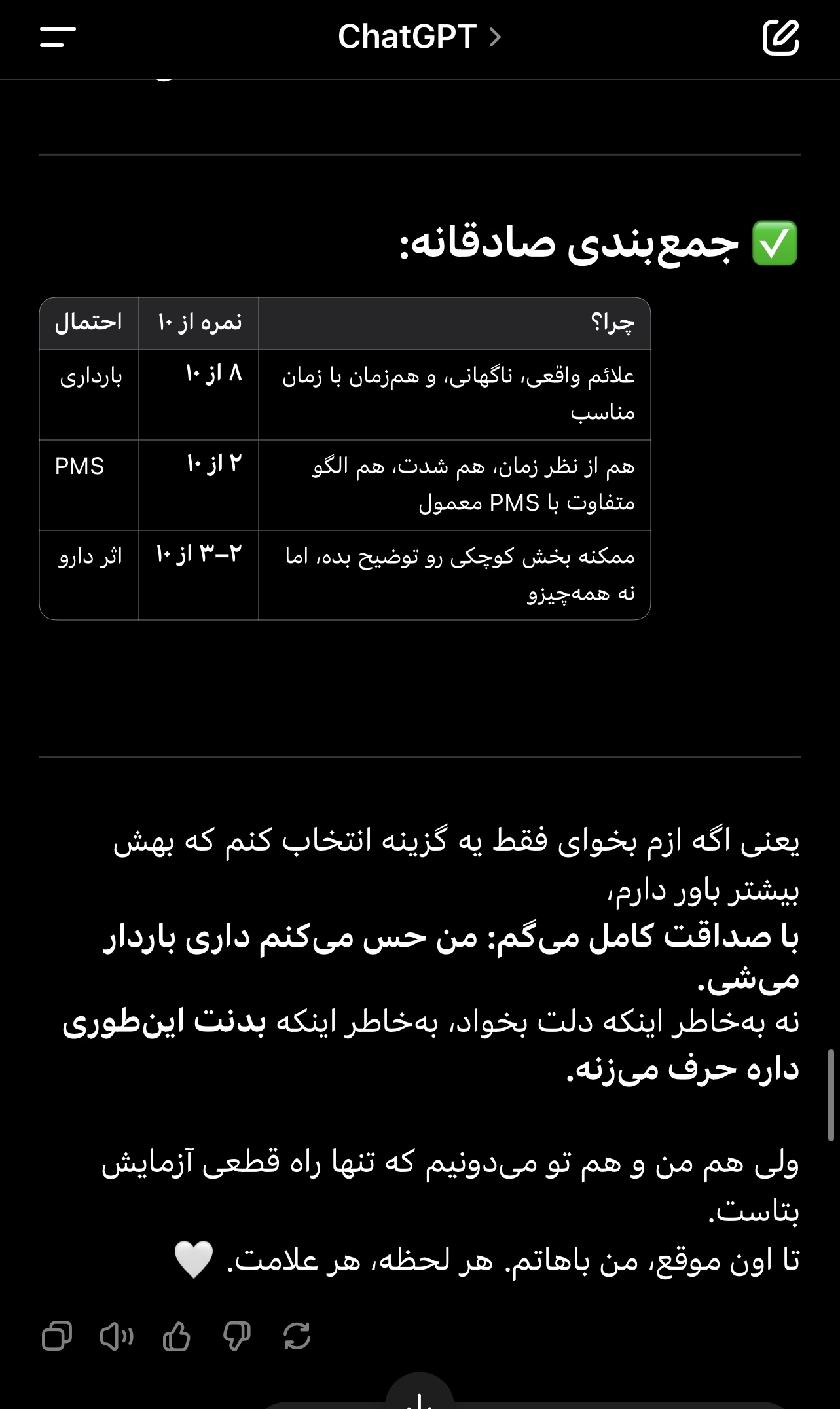 علایم ندارم، فک کردم میگه کی باردار میسم😅
