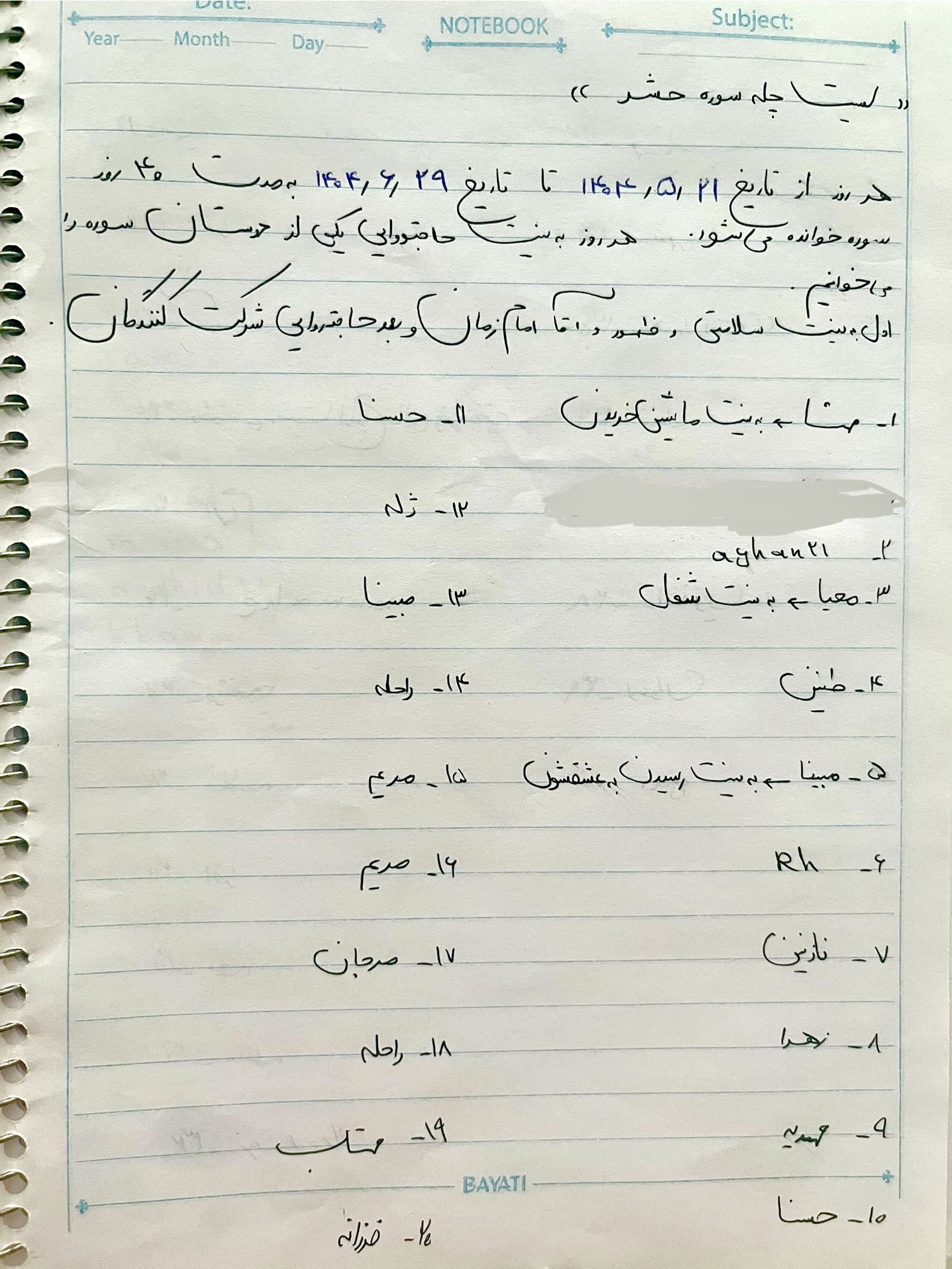 من نوبت افراد چله رو به ترتیب روی کاغذ نوشتم