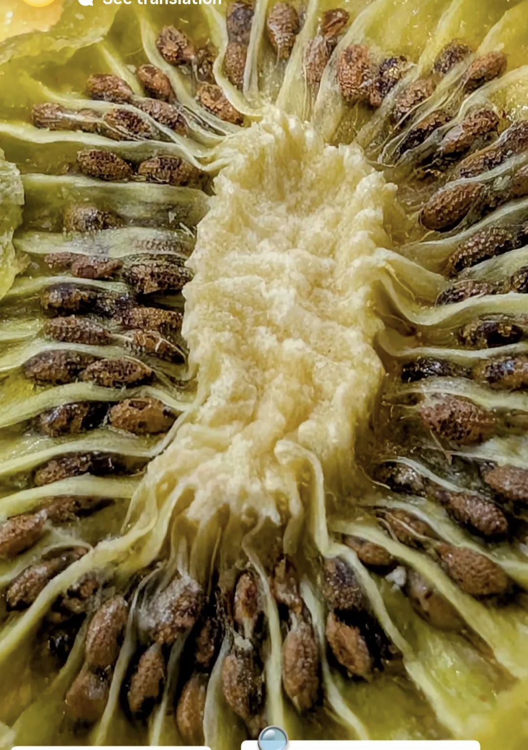 شبیه کیوی هس ولی زرده این.یکی هم دونه هاش اخه اون دایره میشه این شبیه دونه هندونه اس