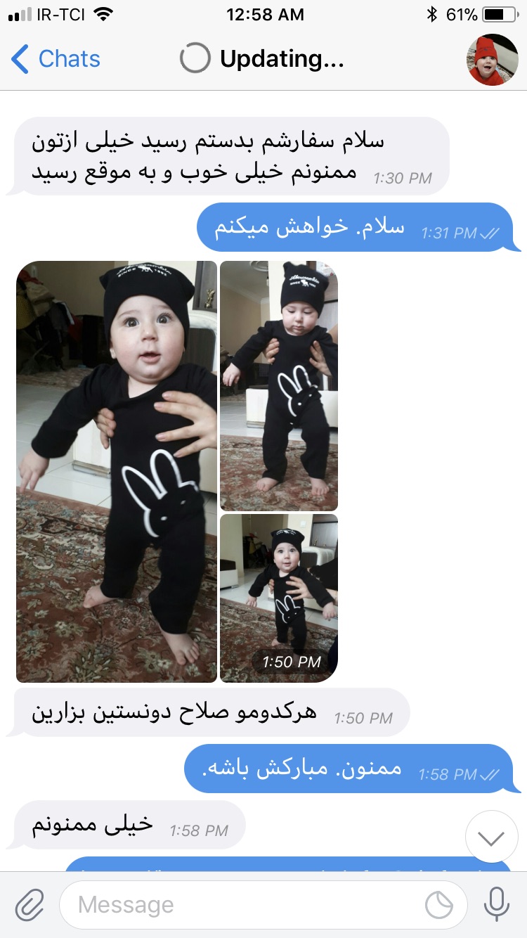 shikce مدیر استارتر عضویت: 1396/12/08 تعداد پست: 459 عنوان لباس بچه حراج 131 بازدید | 8 پست شیک سنتر رو توی گوگل سرچ کنید کانال ما میاد که عکس یه دختر پسره کودکه. یا همینجا سفارش بدید یا پیام بدید ۰۹۱۲۵۰۷۶۳۷۵ 1396/12/24 | 22:20 0 نفر لایک کرده اند ... گزارش تاپیک نامناسب
