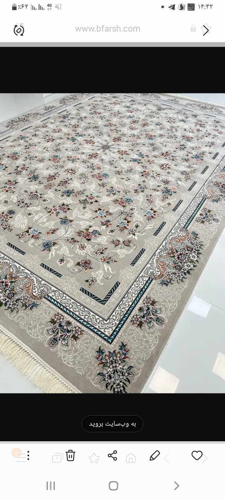 لیا،،، مدیر استارتر عضویت: 1404/05/13 تعداد پست: 130 منم عکس ی فرش میذارم لطفا بگید چطوره؟ قشنگه. بستگی به مبلات داره. و اینکه من الان متوجه شدم فرش باید رنگ و رو داشته باشه که تو فضا به چشم بیاد