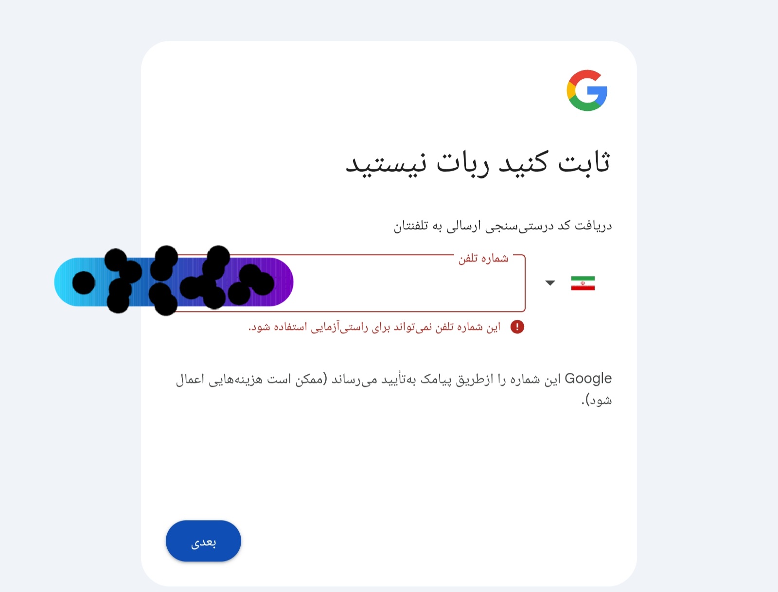 آقا من دارم یه ایمیل جدید می‌سازم برا خودم بعد این شماره تلفن منو نمی‌پذیره! شماره تلفن چندتا از دوستان رو هم زدم باز نمی‌پذیره! چیکار باید کنم ؟ وی پی انم هم وصله