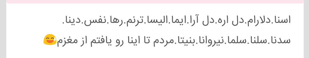 pegah1396 مدیر استارتر عضویت: 1396/08/22 تعداد پست: 682 عنوان اسم دخترم 193 بازدید | 21 پست سلام به همهمن خ دلم ميخواس اسم دخترم فارسي باشه اما چيزي به دلم نشست حالا شوهرم ميگه بزاريم دِنيز به معني دريا تريكيه به نظرتون قشنگه؟اگه پيشنهاديم دارين بدين لطفا🤲🤲🤲 1397/01/12 | 15:05 0 نفر لایک کرده اند ... گزارش تاپیک نامناسب