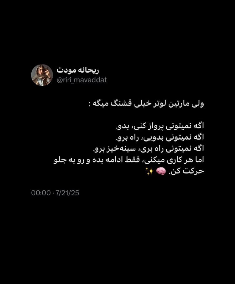 هآی؛من دِلوینم🌱✨اندکي سن دارم + یاری که با گذشت کلي چالش سه ساله به هم رسیدیم🥹🤌🏻(او نه تنها لب هایم را می خنداند بلکه باعث لبخندِ قلبم هم میشود🫂♥️🔗)درحال حاضر تازه کارم و مشغول به خیاطي✂️دختری با اصالتِ بلوچم🪄علاقه مند به تجربه های جدید و حالِ خوبم🤍بزرگترین قلب مال اونیه که انرژی مثبتش رو به دیگران منتقل کنه✨به امید ساختنِ آینده ای زیباوخوب…