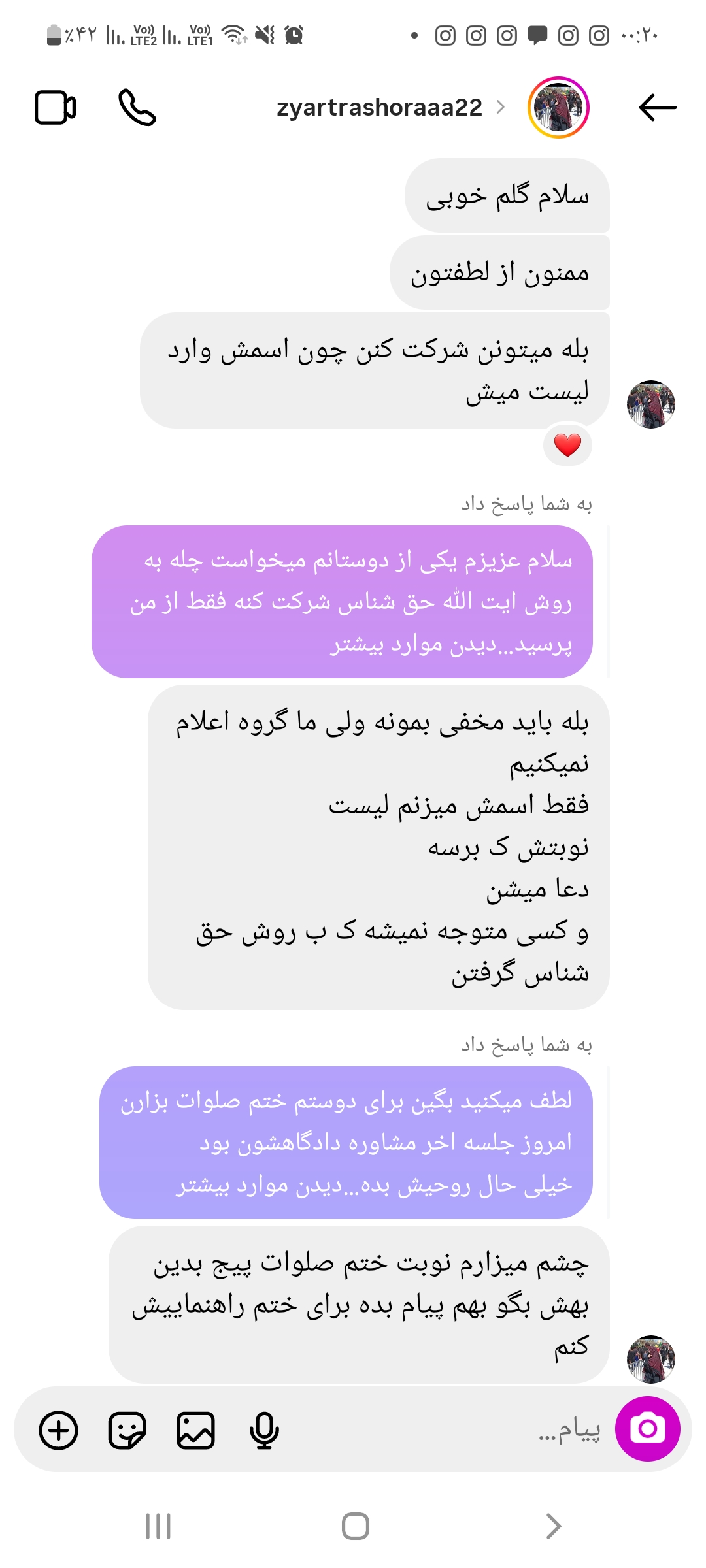 یه دکمه سرچ علامت ذره بین اون بالا هست سرچ کنی niniyar اون پایین آیدیش میاره بعدش بهش پیام بده روزهای زوج فکر کنم زمانش ۱۰ تا ۱۲ و ۲ تا ۴ باشه