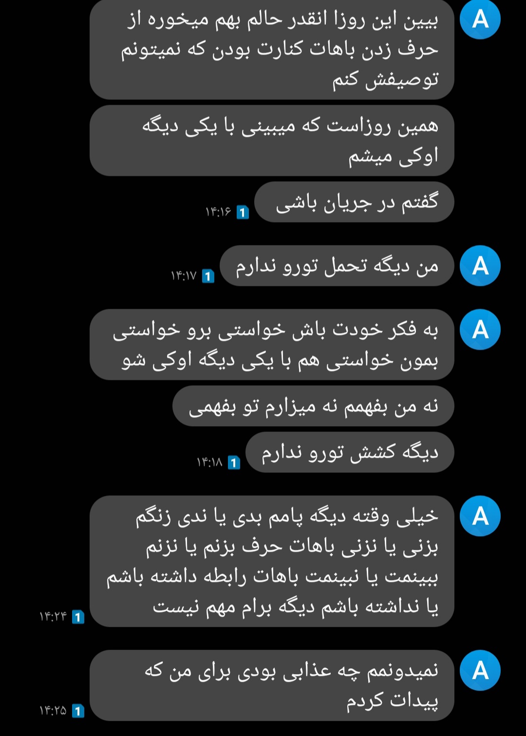 اینبار یه مشت پیام چرت و پرت برام فرستاد (حرف از جدایی و...اسکرین شاتشو براتون میذارم)،