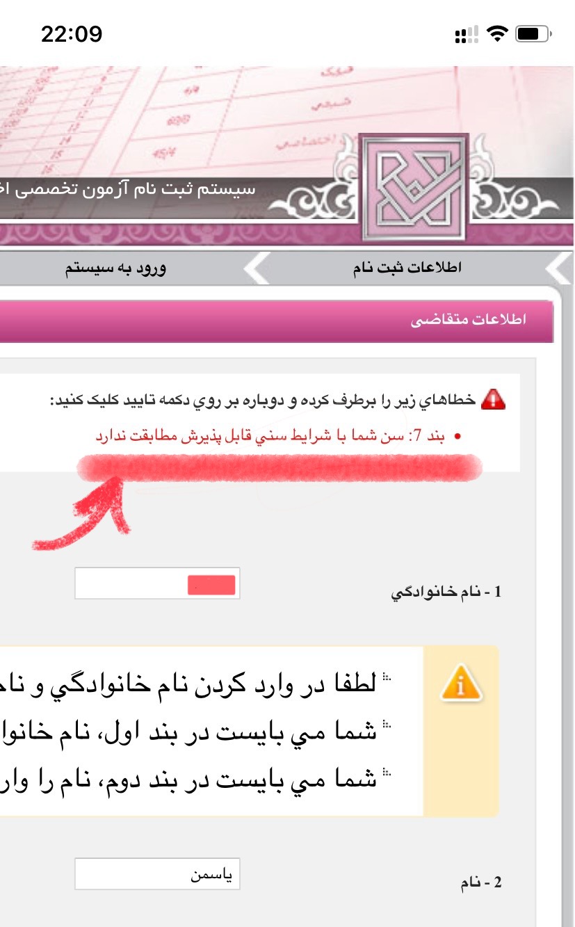 اول آذر که آخرین روز ثبت نام بود رفتم که ثبت نام کنم، سیستم خطا داد که شما واجد شرایط سنی نیستید