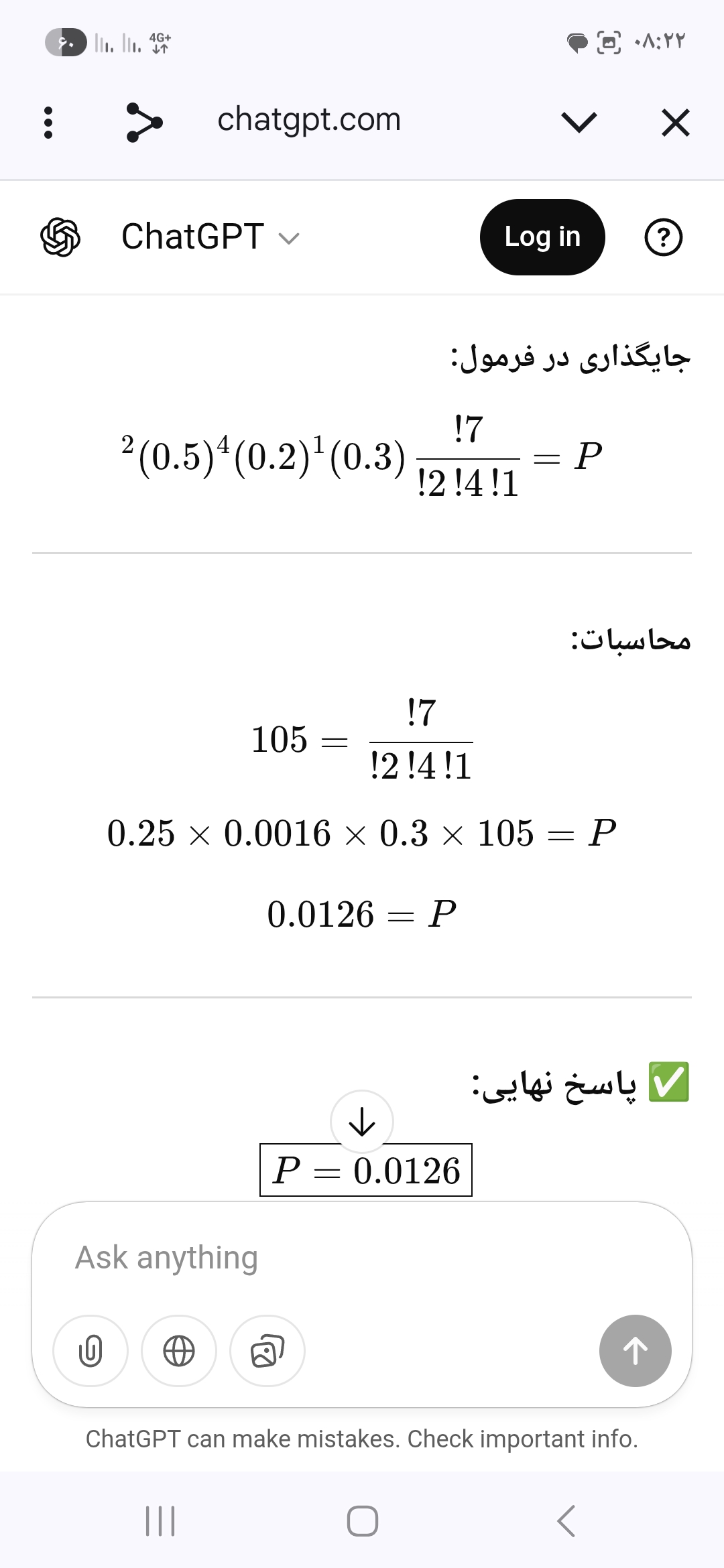 • صندوق ۳: ۴۰ سالم، ۱۰ لکدار → (P(\text{سالم}|\text{صندوق ۳})=\frac{40}{50}=0.8)