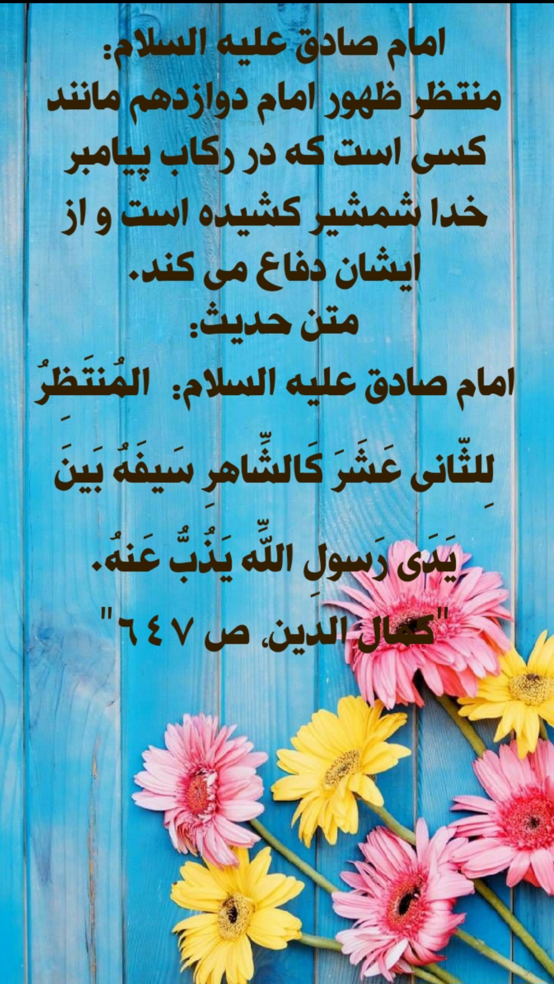 میدونی خدا خیلی دوسِت داره؟اره تو خود تو.اماما هم دوسِت دارن. امام زمان (عج)هرروز تو دعاهاشون برامون دعا میکنن که عاقبت بخیر شیم.نمیشه یدونه صلوات بفرستیم و بهشون هدیه کنیم؟یا ۳ تا سوره توحید؟کلا یه دقیقه هم وقتت رو نمیگیره🌺ولی هم خدا رو خوشحال میکنی هم امامت رو🌺هیچوقت هیچوقت هم ناامید نباش ناامیدی کار شیطونه و بزرگ ترین گناه خدا مارو بیهوده خلق نکرده که ولمون کنه💚گه خواستی و قابل دونستی بگو برات صلوات بفرستم🌺