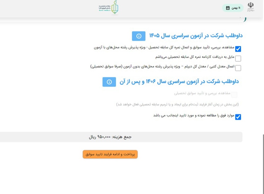 تیک دوم و سوم یعنی علاوه بر کنکور ، رشته های صرفا بر اساس سوابق تحصیلی رو هم برای دانشگاه قصد داری انتخاب کنی