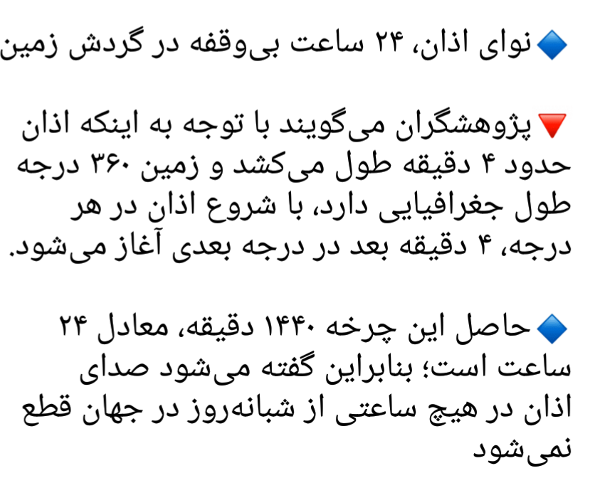 نگین۹۰۸۰۸۷ مدیر استارتر عضویت: 1403/05/31 تعداد پست: 1316 عنوان معجزه اذان 39 بازدید | 0 پست درخواست دوستی ممنوع دیروز | 20:25 3 نفر لایک کرده اند ... گزارش تاپیک نامناسب